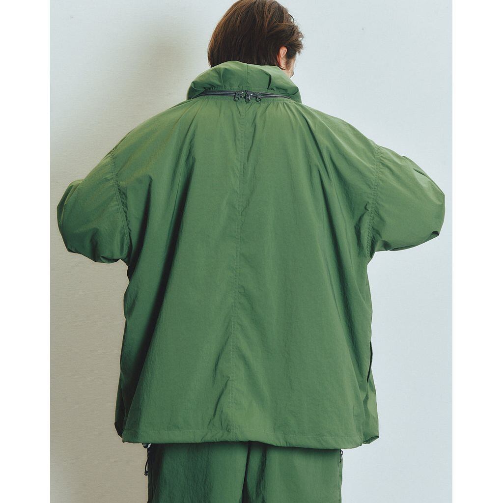 フロント全体にベンチレーションを備えた機能的なライトシェル。身頃のファスナーを開けるとベンチレーションと各種ポケットが現れ、バックネックのファスナーを開けるとフードが現れます。変化する表情とシャープな素材感が特徴です。TECHNICAL VENTILATION SHORTSとセットアップ可能です。