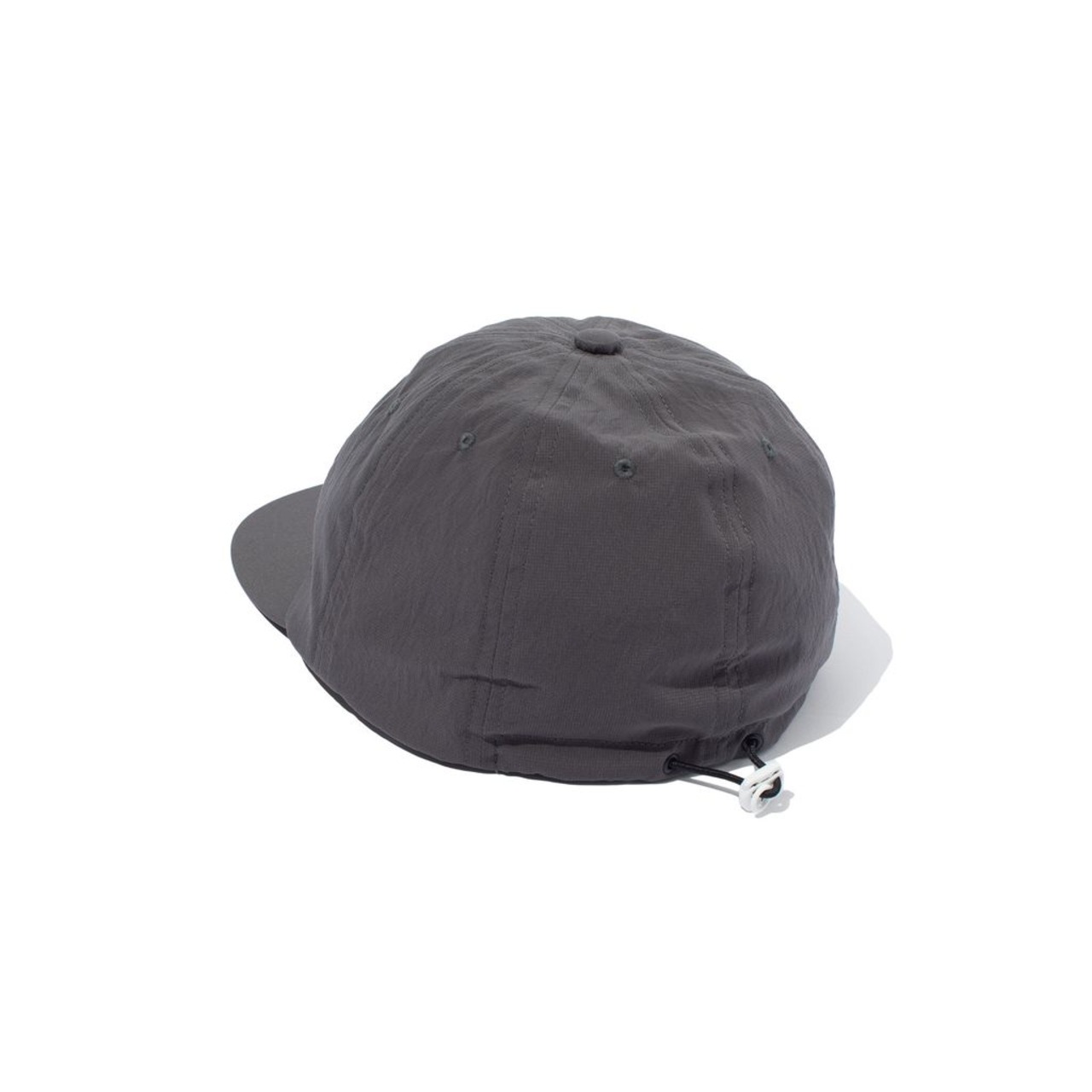 定番で展開する 8パネルキャップは、後ろにアジャスターコードをつけて、フリーサイズに。ドットエアー素材を使用。
