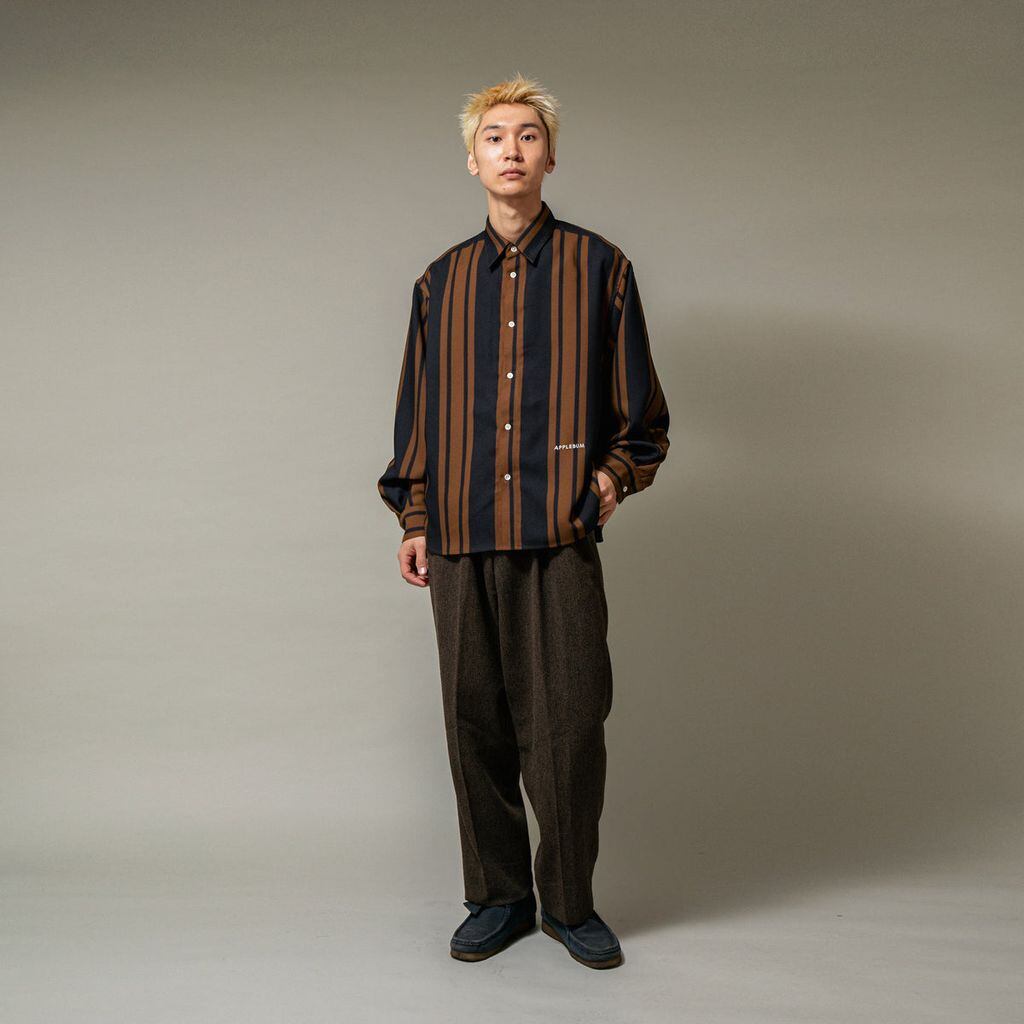 APPLEBUM WOOLY TWILL STRIPE OVERSIZE L/S SHIRT