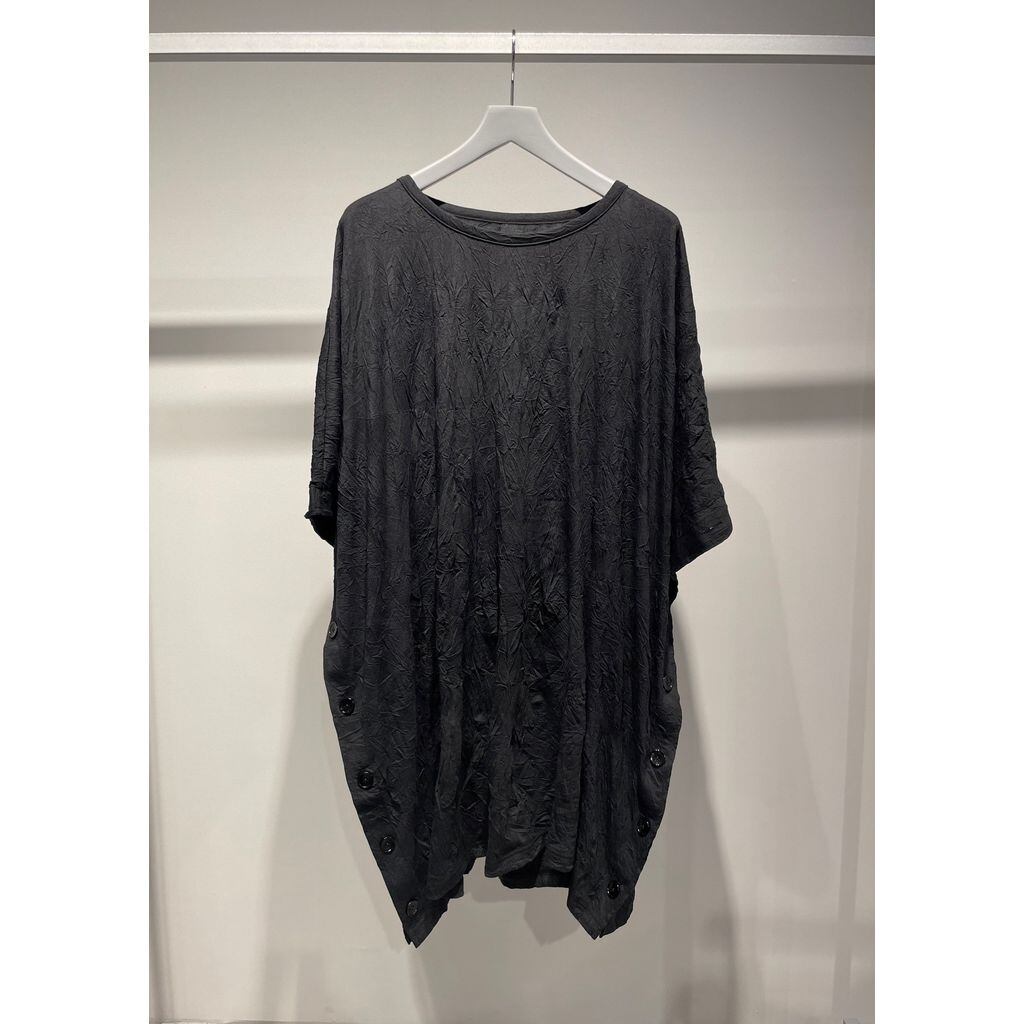 Aラインになびくカットソー。サイドがボタンあきでケープのような型に仕上げています。シャツを中に着たり、レイヤードを楽しめる一着です。