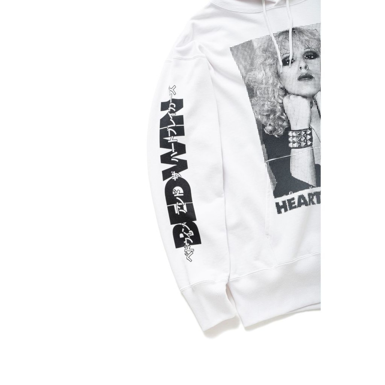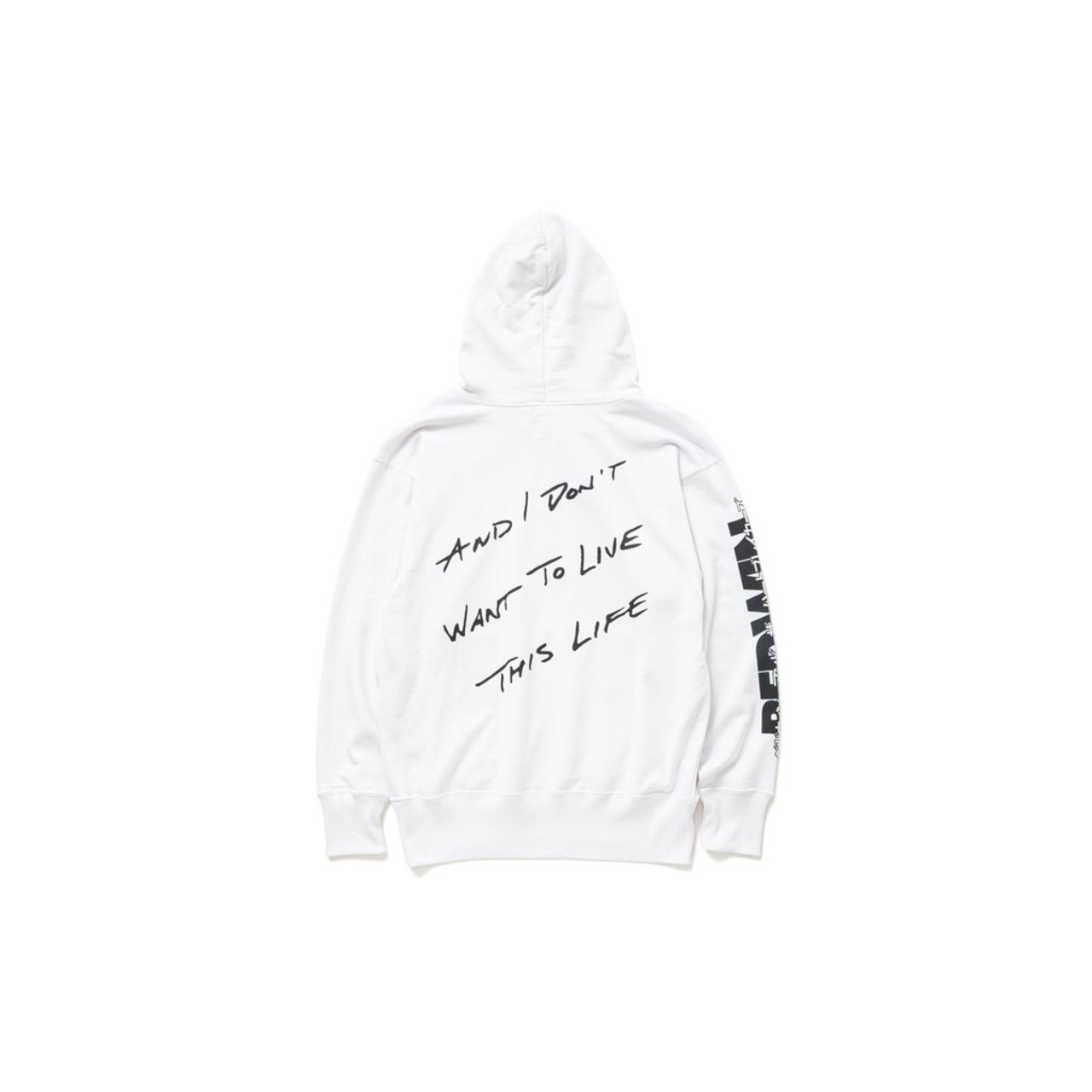 表面にはドライタッチな空紡糸を使用し、裏面を柔らかなコットン素材のパイルにする事で、デイリーに着用してもらえるよう肌触りが良く軽い着心地に仕上げたGOATボディーを使用。STAY FRESH 加工により抗菌防臭、制菌、抗ウィルスの効果が期待される。フロントに大きくシド・ヴィシャスの彼女ナンシーを大きくプリント。ポケット部分にあえて重ねることで一つとして同じ仕上がりにはならない個体差が楽しめる。背中にはナンシーのメッセージ、袖にはロゴをそれぞれプリント。ホワイトのみの展開。