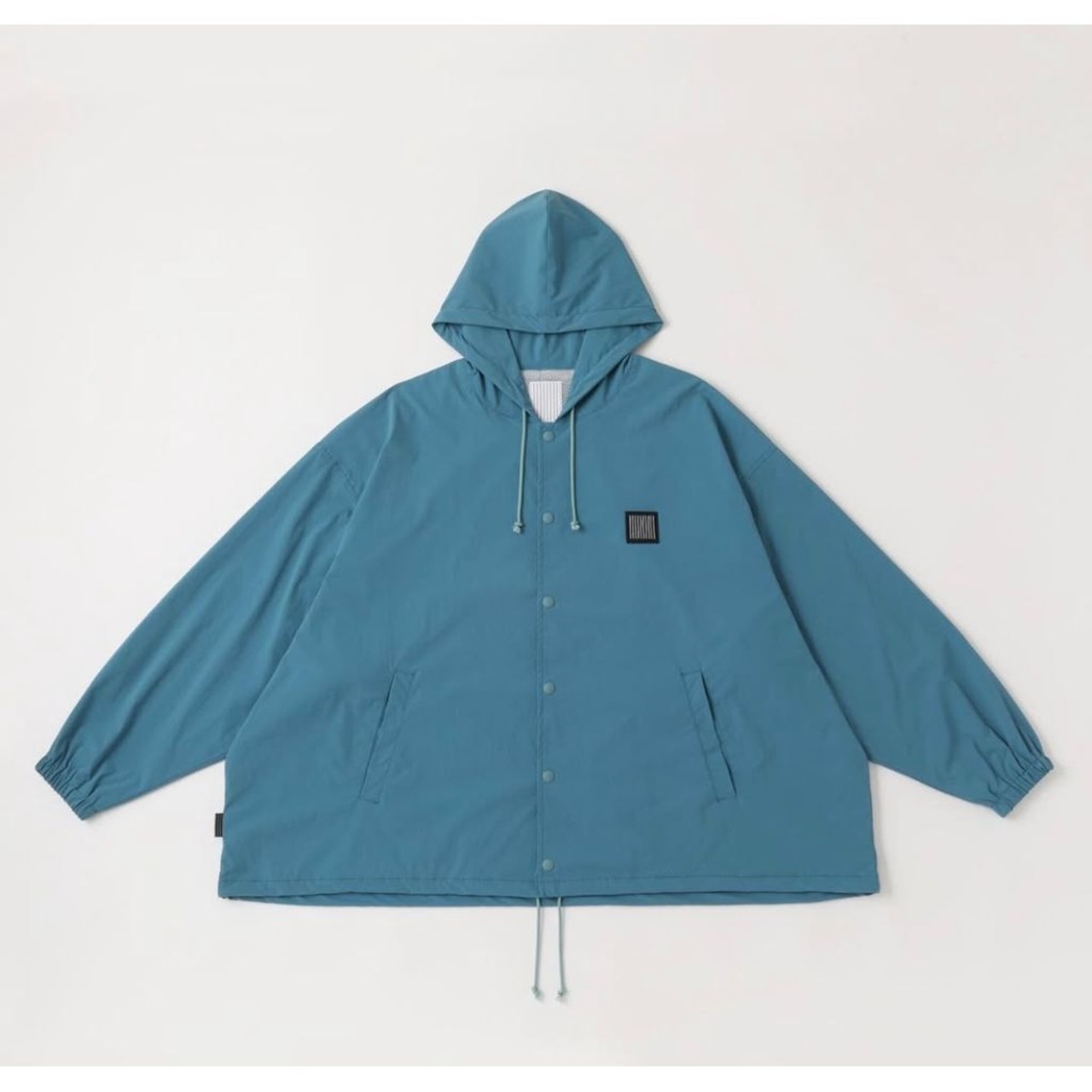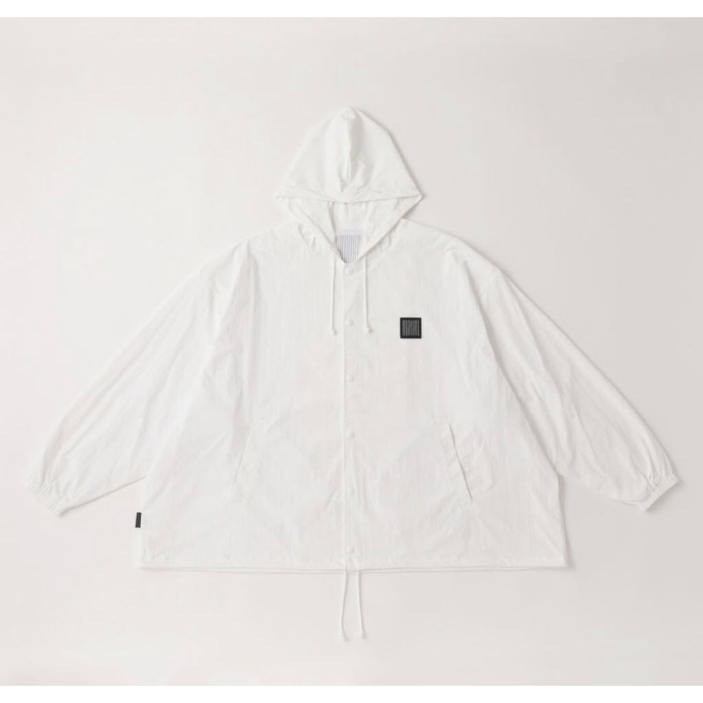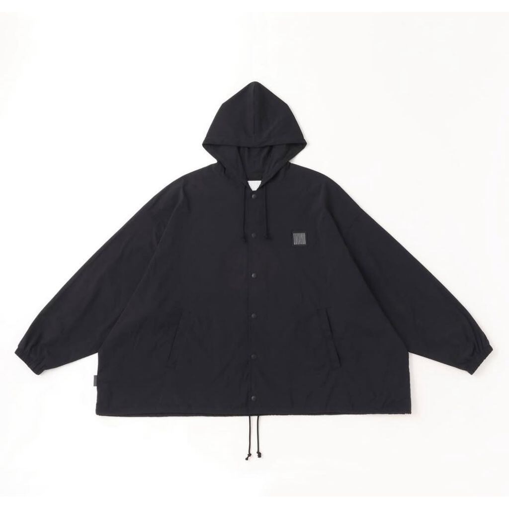 フード付きワイドシルエットのコーチ JACKET。素材は快適な着心地のストレッチナイロンを使用。タスラン糸によるコットンタッチのドライ感とナイロン特有のしなやかな風合いを兼ね備えたナイロン素材です。ワッシャー加工を施しているのでシワを気にせず着用可能です。