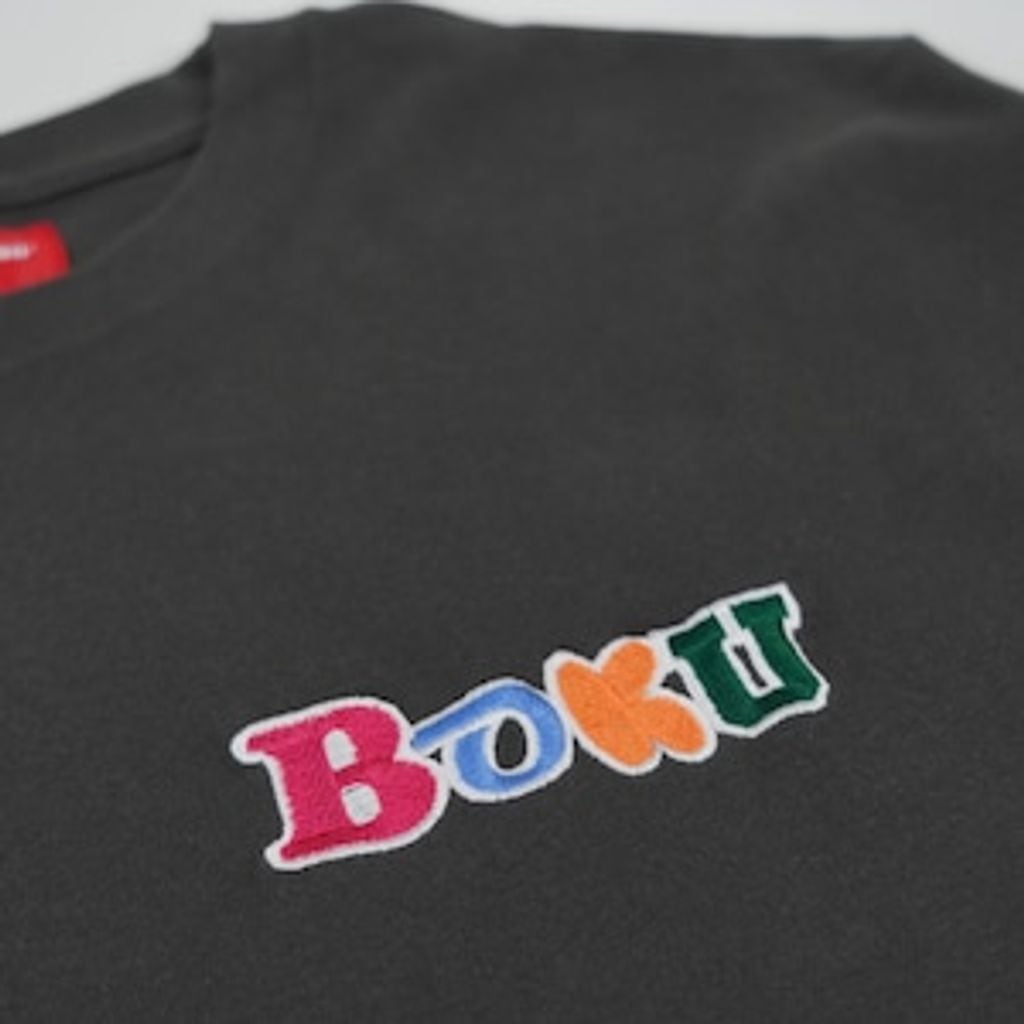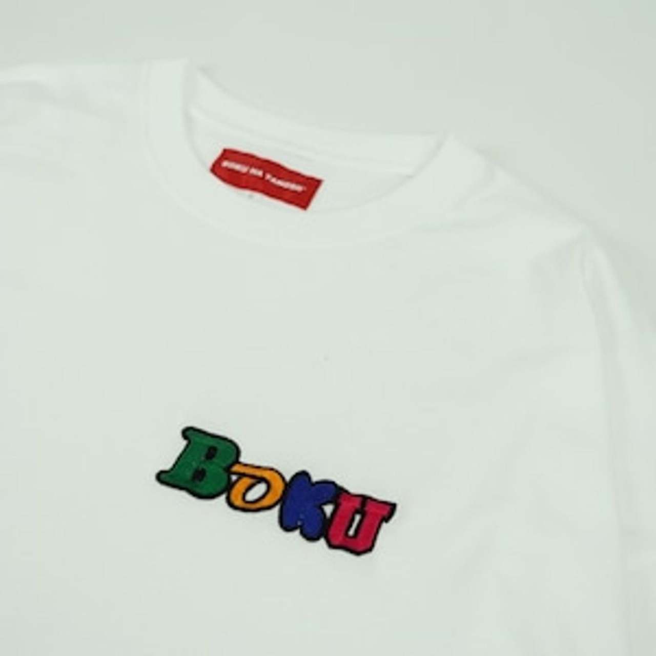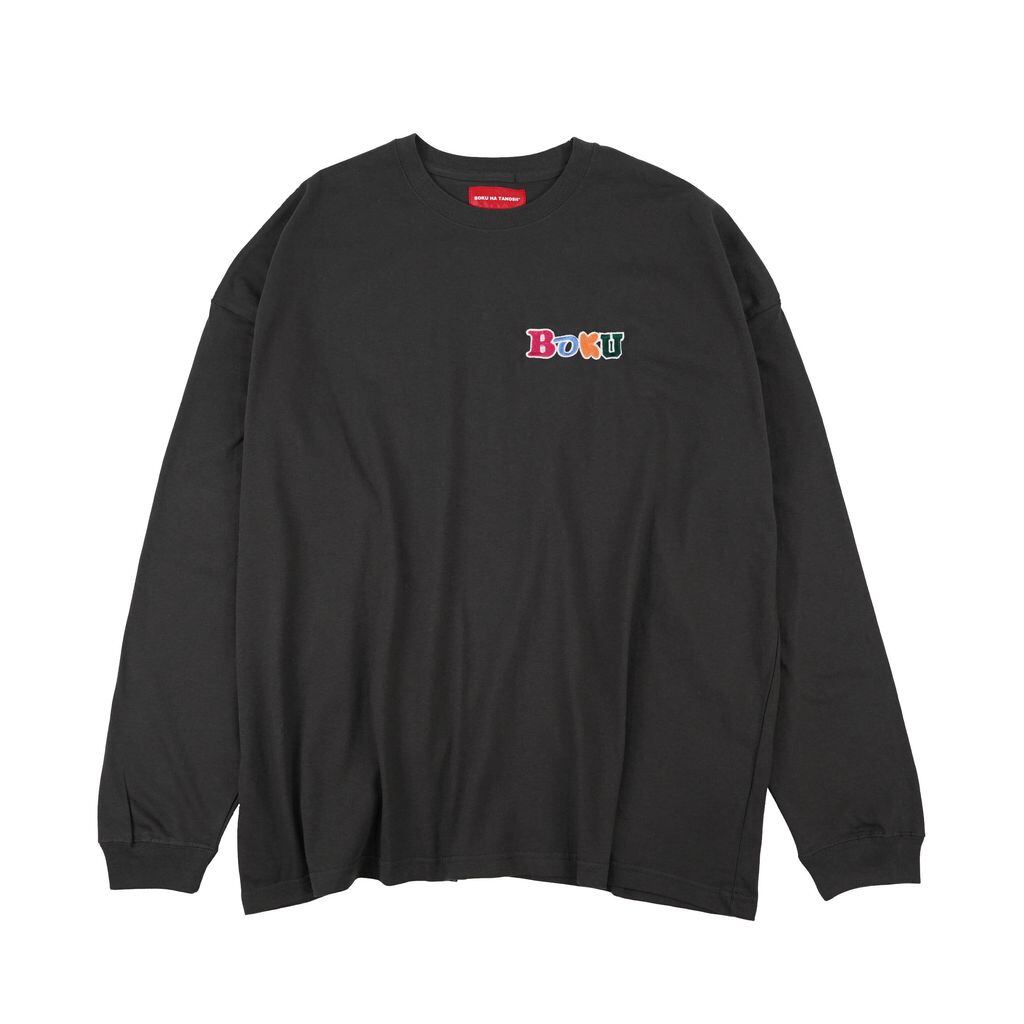 ワッペンのような ”BOKU” が刺繍で胸元に施されたゆるいシルエットのロンTです。
