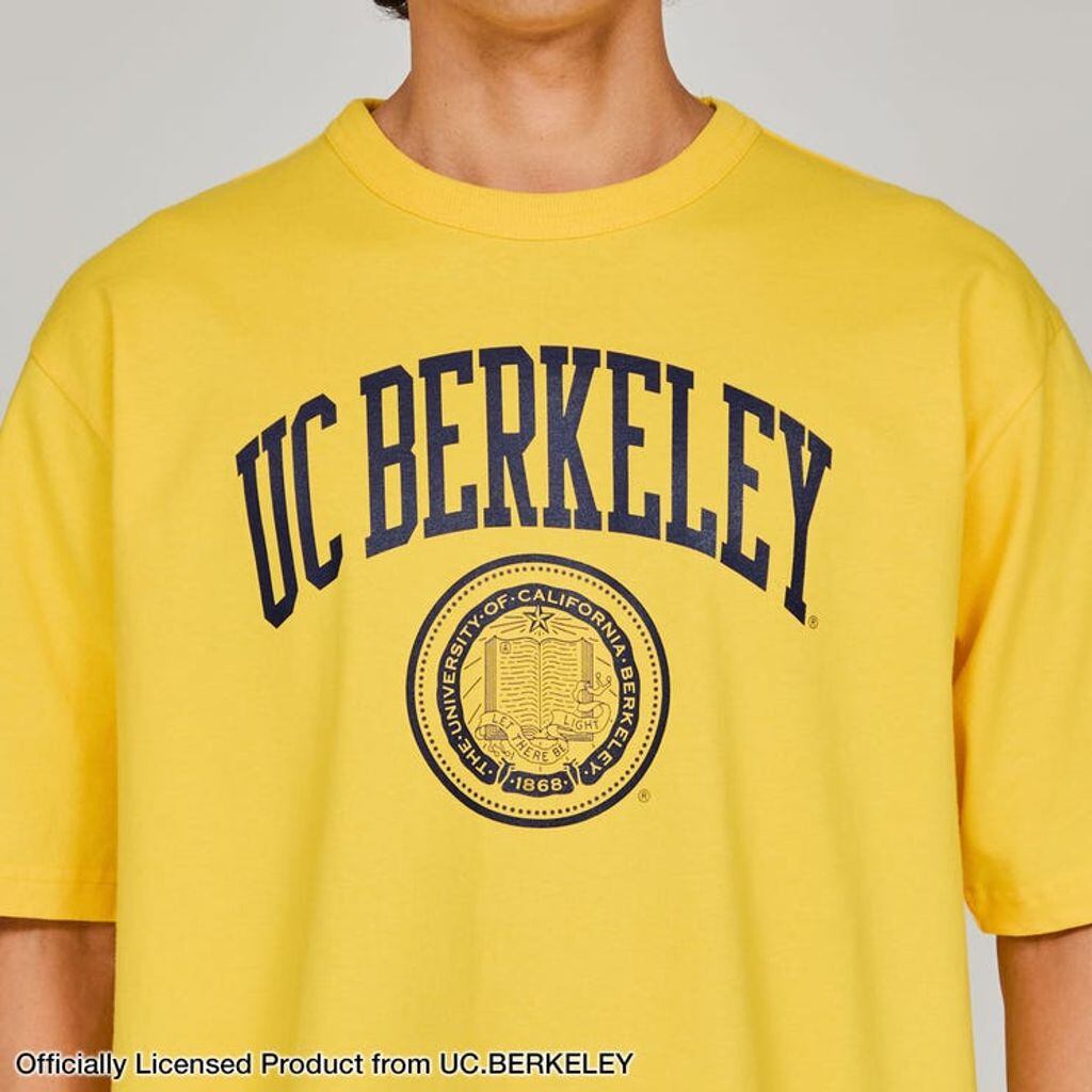 1930年代から改良を重ねながら愛され続けてきたヘビーウェイトTシャツの代名詞「T1011(ティーテンイレブン)」の、オフィシャルカレッジライセンスシリーズ「UCB(ユーシービー/カリフォルニア大学バークレー校)」のショートスリーブTシャツです。USAコットン特有のドライ感に富んだ肌触りが特長で、着るほどに味わいを増す1枚です。サイドに縫製がない丸胴仕様で、オーセンティック アメリカン アスレチックウェアのChampion®(チャンピオン)らしいバインダーネック仕様もポイントです。胸のプリントは、カリフォルニアの「Cal」を大きく入れたデザインと、アーチ状の「UC BERKELEY(ユーシー バークレー)」に校章を組み合わせたデザインの2タイプ。ホワイトのボディには染み込みプリント、ネイビーとイエローのボディにはラバープリントを使用しています。カリフォルニア大学バークレー校は、1868年にアメリカ・カリフォルニア州バークレーに設立された公立研究大学で、カリフォルニア大学10校の中で一番古いキャンパスです。多くの大学ランキングで世界のトップ10大学に位置付けられ、教職員や研究者には100名以上のノーベル賞受賞者、25名のチューリング賞受賞者、14名のフィールズ賞受賞者が含まれています。また、同大学出身のアスリートやチームは合計200個以上のオリンピックメダルを獲得しています。