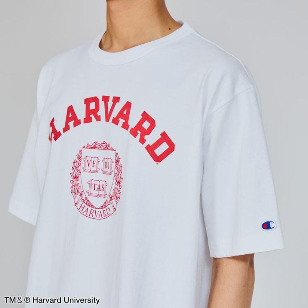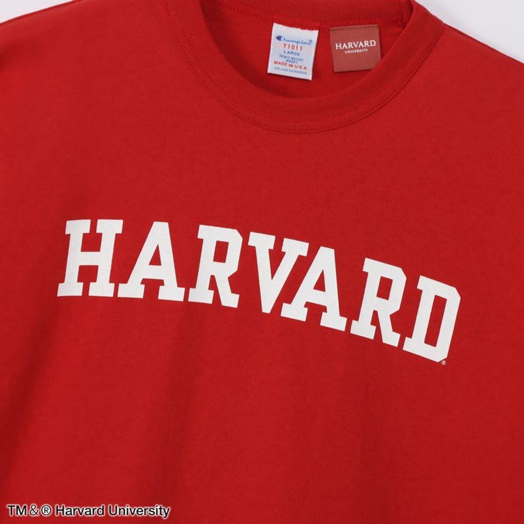 1930年代から改良を重ねながら愛され続けてきたヘビーウェイトTシャツの代名詞「T1011(ティーテンイレブン)」の、オフィシャルカレッジライセンスシリーズ「HARVARD(ハーバード大学)」のショートスリーブTシャツです。USAコットン特有のドライ感に富んだ肌触りが特長で、着るほどに味わいを増す1枚です。サイドに縫製がない丸胴仕様で、オーセンティック アメリカン アスレチックウェアのChampion®(チャンピオン)らしいバインダーネック仕様もポイントです。胸のプリントは「HARVARD」と校章を組み合わせたデザインと、「HARVARD」を大きくゆるやかなアーチで入れたデザインの2タイプ。ホワイトのボディには染み込みプリント、カーディナルのボディにはラバープリントを使用しています。ハーバード大学はアメリカ・マサチューセッツ州にある私立大学。アメリカ東部の名門大学群「アイビー・リーグ」に所属し、国内で最も学術的起源の古い高等教育機関です。現在に至るまでに8人のアメリカ合衆国大統領や、100人以上のノーベル賞受賞者を輩出しています。