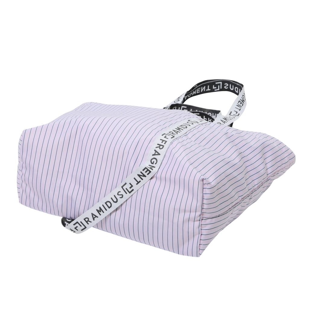 手持ち、肩掛けで使える日常使いには十分な容量を備えたトートバッグ。1本のテープで切れ目無く構成されたハンドルは、両ブランドのロゴがジャガード織りで表現されたfragment designとのコラボレーションを象徴する仕様。