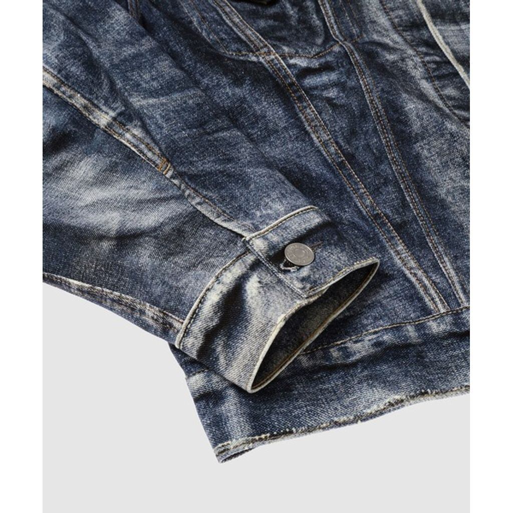 原宿のヴィンテージショップ『BerBerjin』とのコラボレーションによる新作が登場。1970年代のサードと呼ばれるモデル『70505』をもとにした一枚は元々ブランケットライナーがついたモデルを使用し3Dプリンターにて撮影した画像をコットン生地に転写プリントしたデザインに。本来ブランケットライナーがついていたからこそ入る複雑な袖のハチの巣状のアタリや首元のダメージなどヴィンテージならではの経年変化をプリントにて忠実に再現。eYeにおいては通常のサイズバランスに変化をつけ、あえてBIGシルエットのバランスとする事でモードな印象をプラス。。フロントのボタンなども通常よりも大きいリーバイスのパーツを使用するなど、JUNYA WATANABE MANだからこそ可能な、「BerBerjin」×「Levi's」とのスペシャルなコラボレーションピースとなっています。