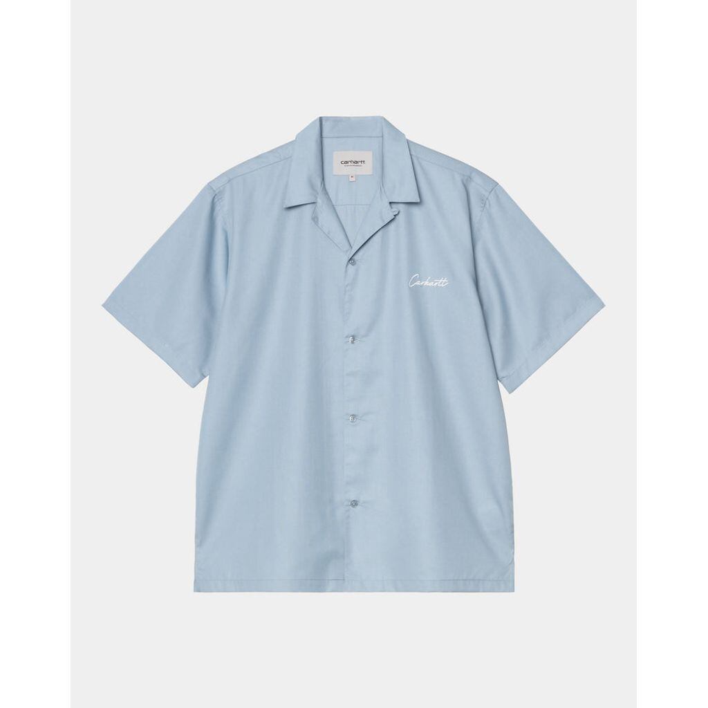 テンセル™とコットンの混紡素材をルーズフィットに織り上げたショートスリーブデルレイシャツ。軽量な素材を使用した半袖仕様のサマーシャツ。シルエットはゆったりとしたルーズフィット。キャンプカラー、フロントボタン、左胸にカーハートWIPのロゴ刺繍入り。