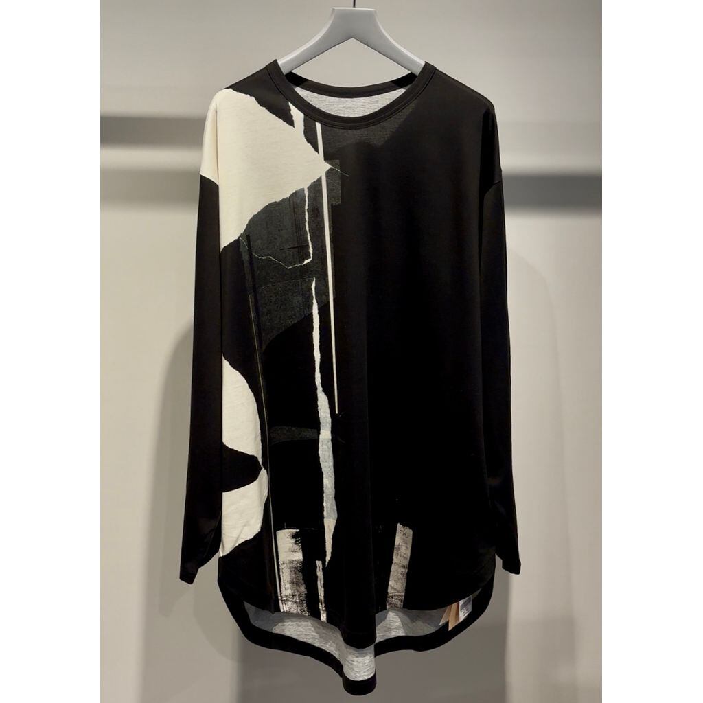 COTTON JERSEY TORN PATTERN HEM ROUND JUMBO T-SHIRT LONG SLEEVES