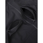 細番手の糸を高密度に織り込んだポリエステルの生地は、なめらかで上質な印象。適度なストレッチ性も持ち合わせています。生地にははっ水加工を施し、多少の雨や汚れに対応。フロントに4カ所のポケットを配置し、胸のファスナー付きポケットにはスマートフォンや財布などの貴重品を収納可能です。UVプロテクト(UPF50+、紫外線カット率95%以上)機能付き。裾のドローコードでフィット感の調節が可能です。