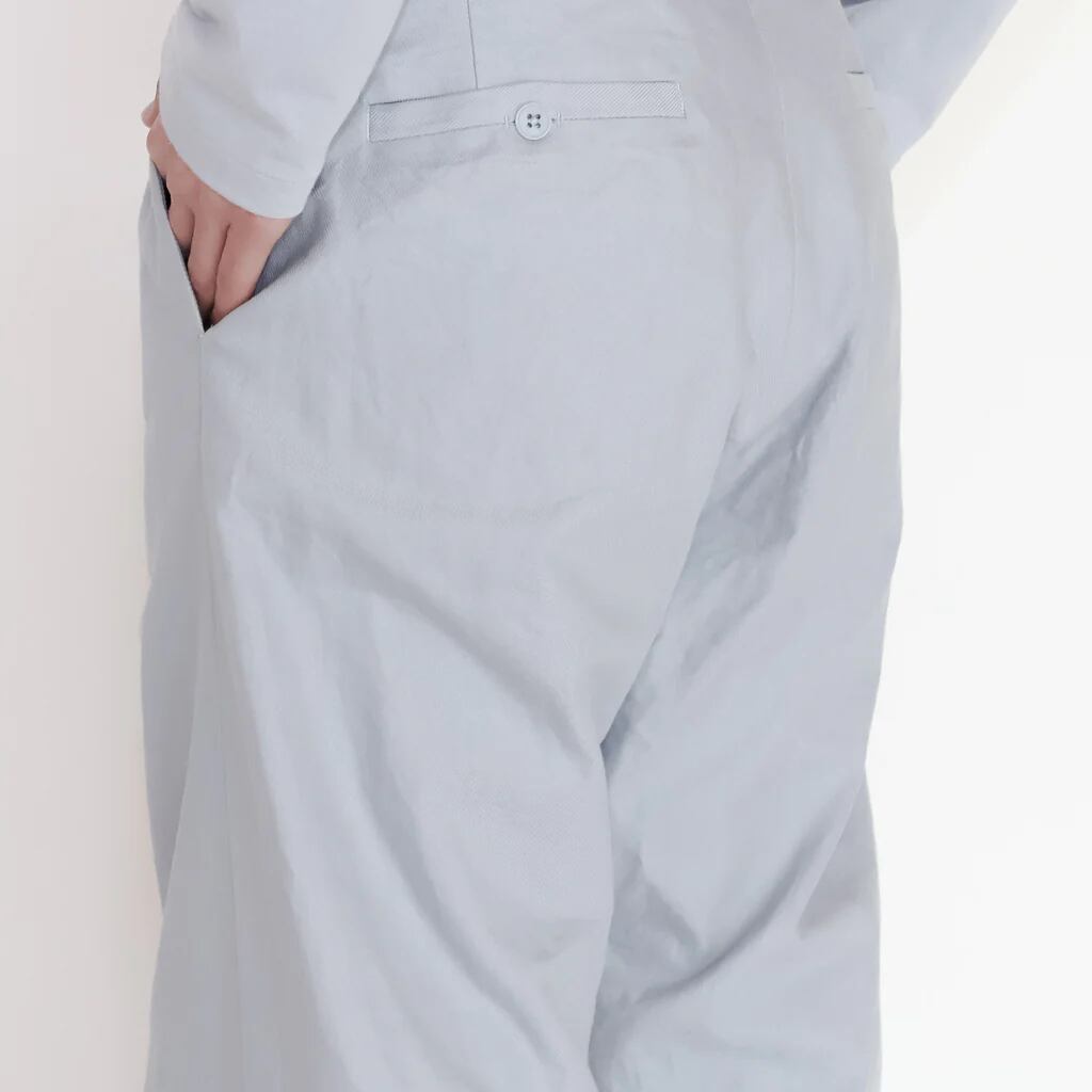 生地を織るとき、糸にテンションをかけすぎることなく、ふんわりと仕立てたチノツイルで作ったパンツです。定番で作っているYAECAのチノクロスに比べて、ソフトな肌触りで、ストレッチ性を感じさせるような、やわらかい仕上がり。