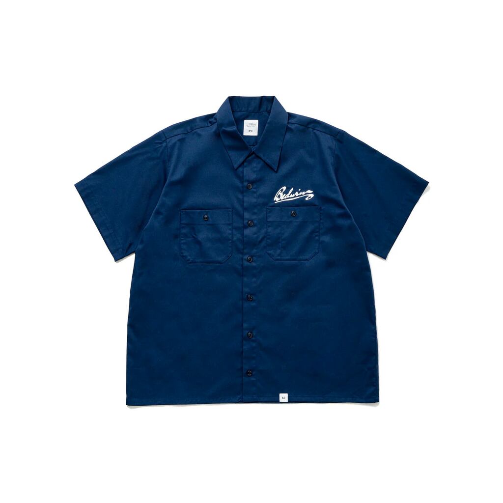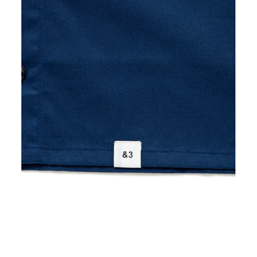 整備士が着用していたメカニックシャツをアップデート。身巾を少し大きめに設定し、身巾を少し大きめに、着丈を少し生地各設定している。両胸にポケットを配置し、左胸ポケット上にチェーンステッチでブランドロゴを刺繍で配置。適度なハリ感のポリエステル・コットンを採用。