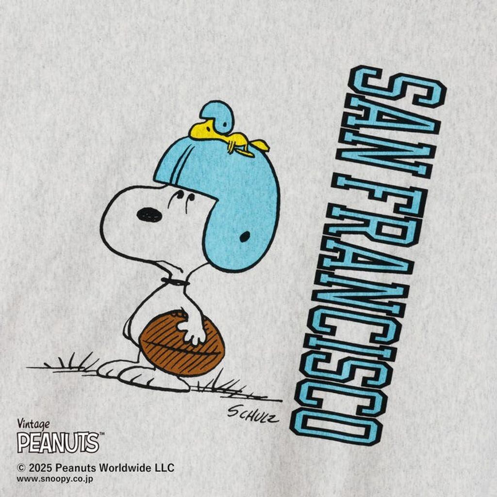 Champion®(チャンピオン)を代表する製法の「REVERSE WEAVE®(リバースウィーブ®)」。環境に配慮して生産されたサステナブルなアメリカ綿100%のしっかりとした天竺素材を使用した「REVERSE WEAVE® 9.4oz. Jersey(リバースウィーブ® 9.4オンス ジャージー)」シリーズで、高い耐久性が特長のショートスリーブTシャツです。本来は縦方向に使われる生地を横方向に使用する「REVERSE WEAVE®」製法によって縦の生地の縮みを防ぐと同時に、両脇に「EXPANSION GUSSET(エクスパンションガゼット)」を付けることで横の縮みへの影響を少なくし、動きやすさに配慮しています。身幅にゆとりを持たせたリラックスフィット。製品洗い加工により、着用の当初から着慣れた風合いが味わえます。SNOOPY(スヌーピー)で知られるPEANUTS(ピーナッツ)のチャンピオンオリジナルアイテムで、胸にフットボールをモチーフにしたグラフィックを入れています。ホワイトとオートミールのボディには染み込みプリント、ネイビーのボディにはラバープリントを使用しています。