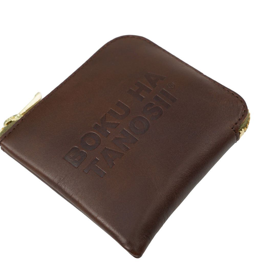 シンプルな作りの牛革ウォレットにBOKU HA TANOSIIの2段ロゴを刻印。