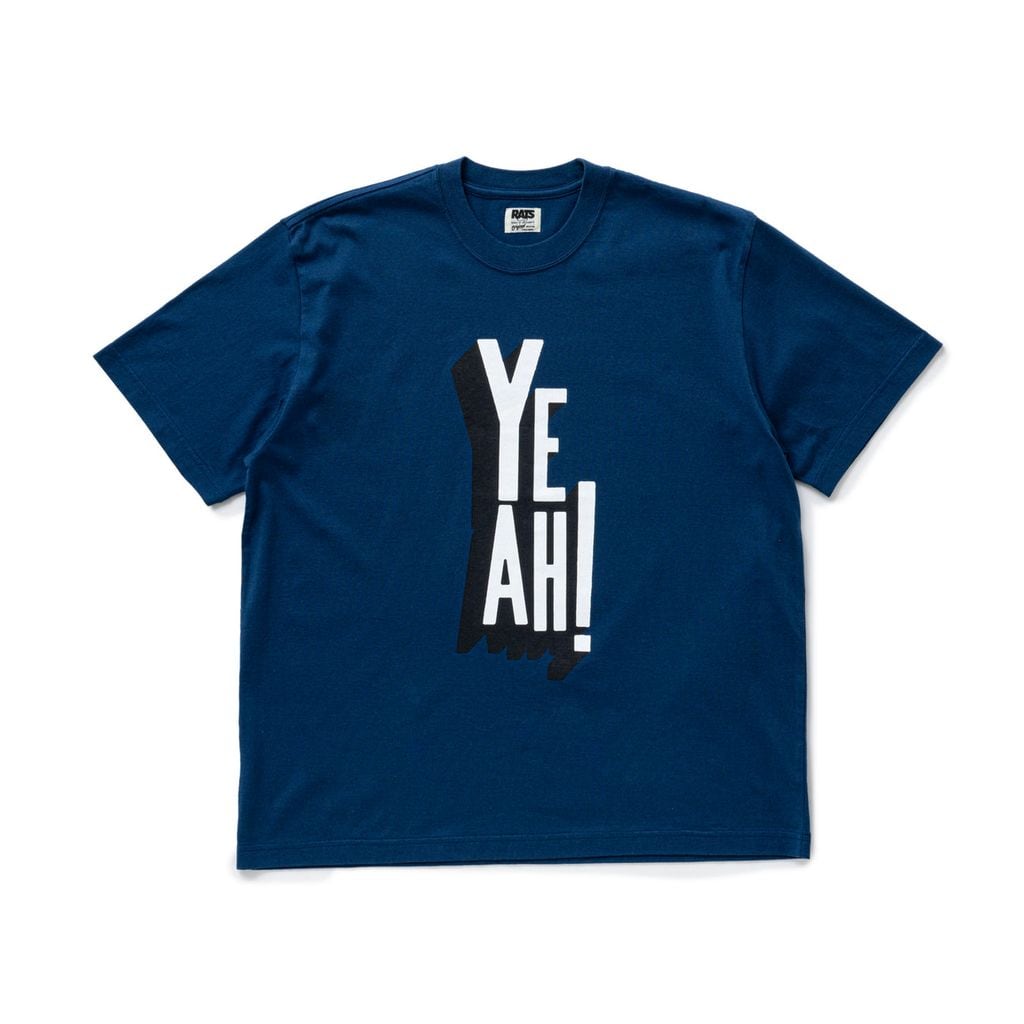 6.4ozのオリジナルコットン天竺素材を使用したショートスリーブTシャツ。前見頃に YEAH! グラフィックをラバープリントで表現したデザイン、背面右腰にRatモチーフのワンポイント刺繍。レギュラーフィットシルエット。製品にてワンウォッシュ済み。4色5サイズ展開。