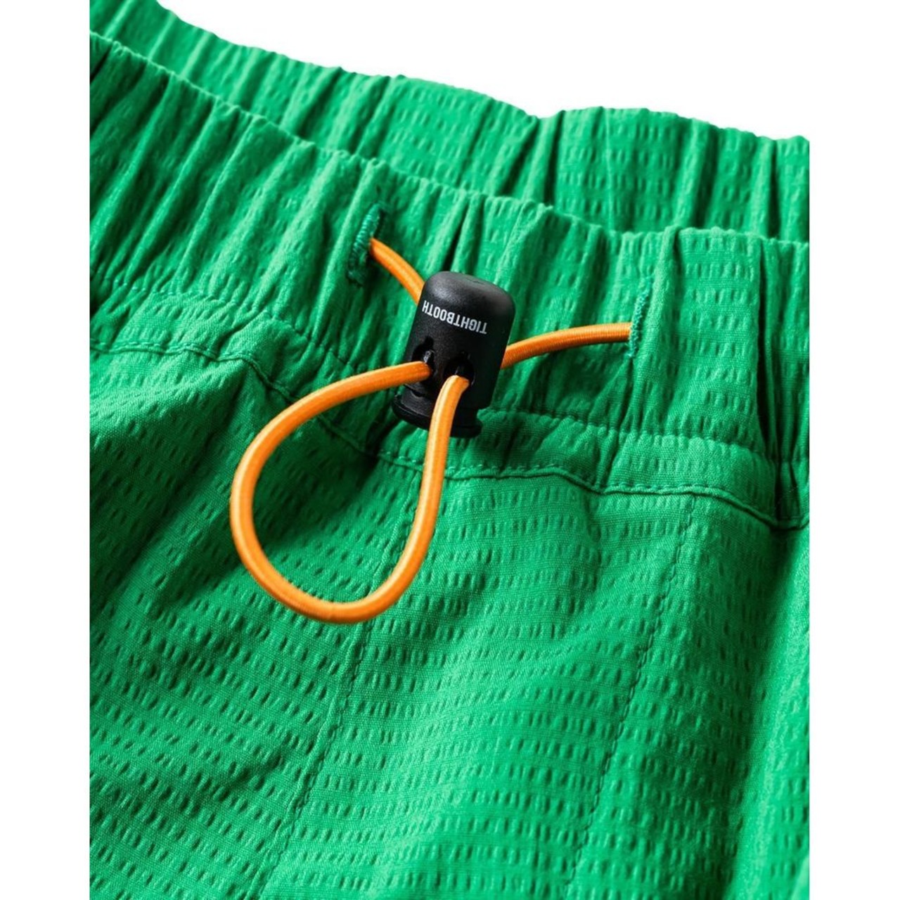 ベルトループ付きのゴム入りウエストバンドには、外出しのオレンジのドローコードとコードロックを搭載。