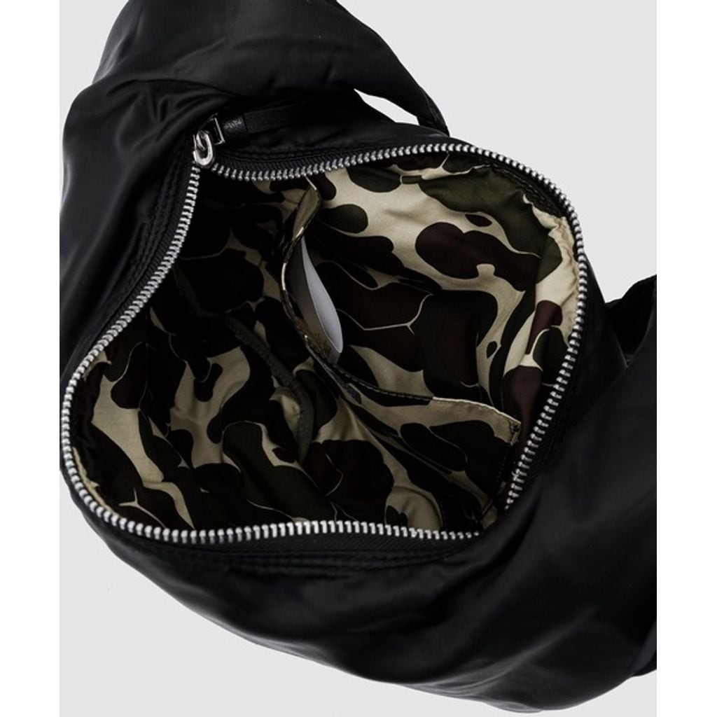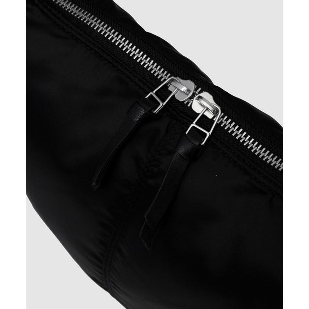 丸くラウンドしたボトムのデザインが特徴的なバッグは、斜め掛けで体に沿う様にデザインされたボディバッグタイプ。素材にはミリタリーウェアなどにも使用されるナイロンツイルを使用する事で高い強度を誇ります。またストラップ部分は長さ調整が可能なダブルリング使用となっており、体系に合わせた長さ調整が可能。ボディはスライダー付きのダブルジップ仕様になっているなどバッグとしてのデザイン性に機能性もプラスされたアイテムとなっています。