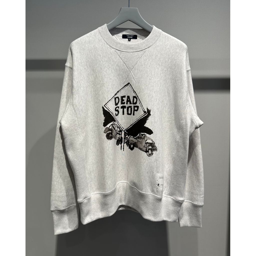 フロントに描かれた特徴的なアートワークはイギリスのイラストレーター「ラルフ・イドリス・ステッドマン」によるもの。筆の様に流れるタッチにより黒一色で描かれた社会風刺画的な毒気のあるイラストレーションが特徴です。グレーのスエットボディに描かれたインパクトのあるアートワークがシンプルでありながらもインパクトのあるデザインとなったデザイン性の高い一枚です。