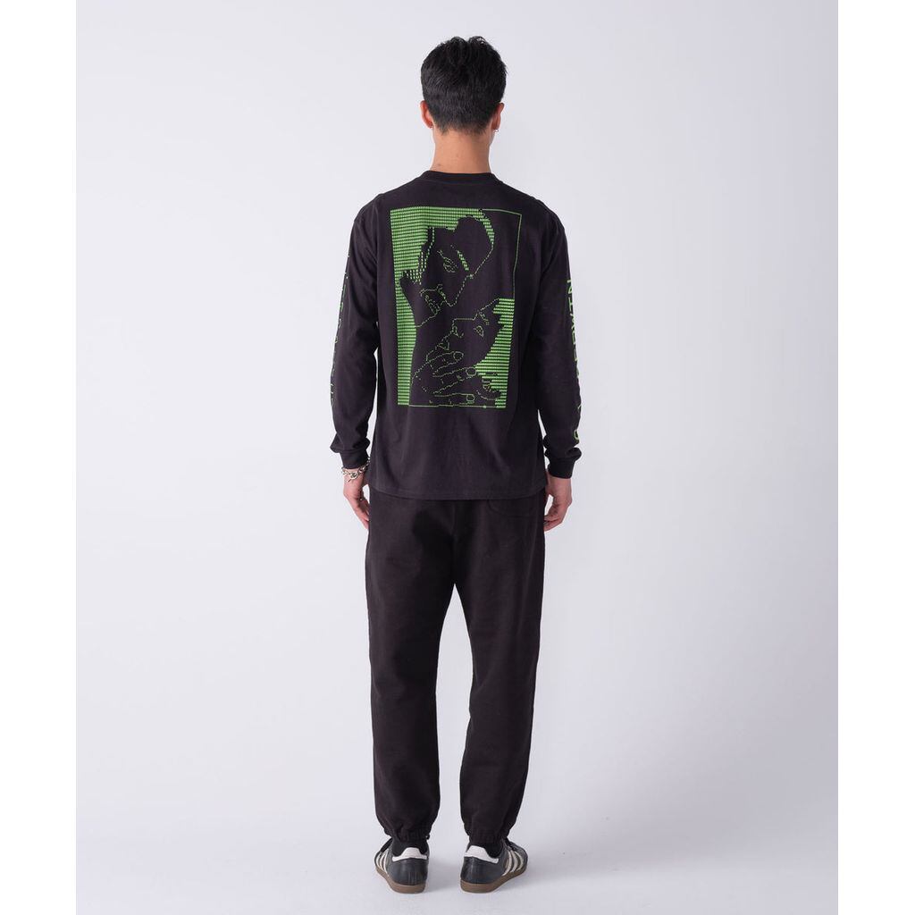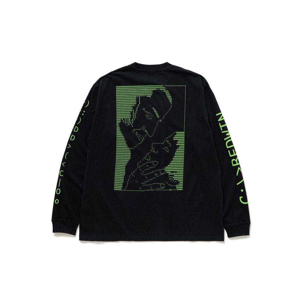 フロント、バックと袖にそれぞれアスキー記号を用いたグラフィックを大きくプリント。ボクシーでゆったりとしたGOATボディー使用。ブラックのみの展開。