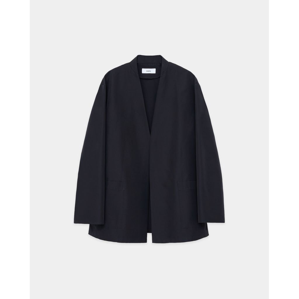 marka定番の「Lapelless Shirt Jacket」は、ジャケットのようにも、カーディガンのようにも着用できる万能アイテム。