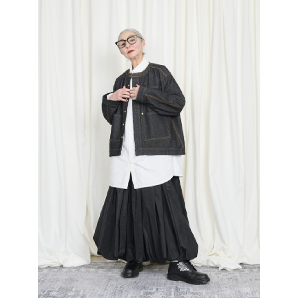 フロントのポケットやステッチのディテールがアクセントになり、カジュアルながらも上品な印象があります。胸元には今季のテーマ「LAZY AND NASTY」の刺繍入り。