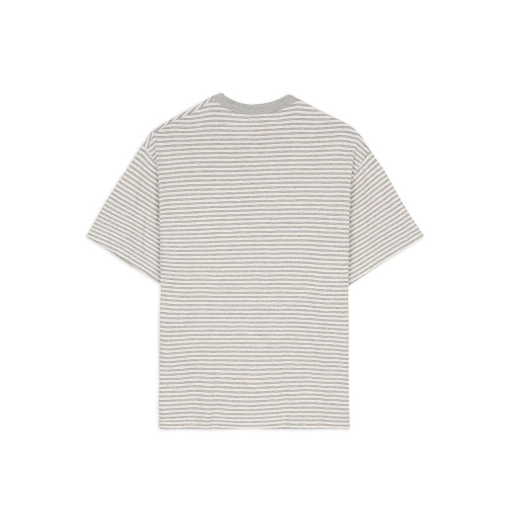 ブルックス ブラザーズとのコラボレーションによる、ゆったりとしたニット素材のストライプ柄半袖Tシャツ。シングルステッチの縫い目が特徴です。