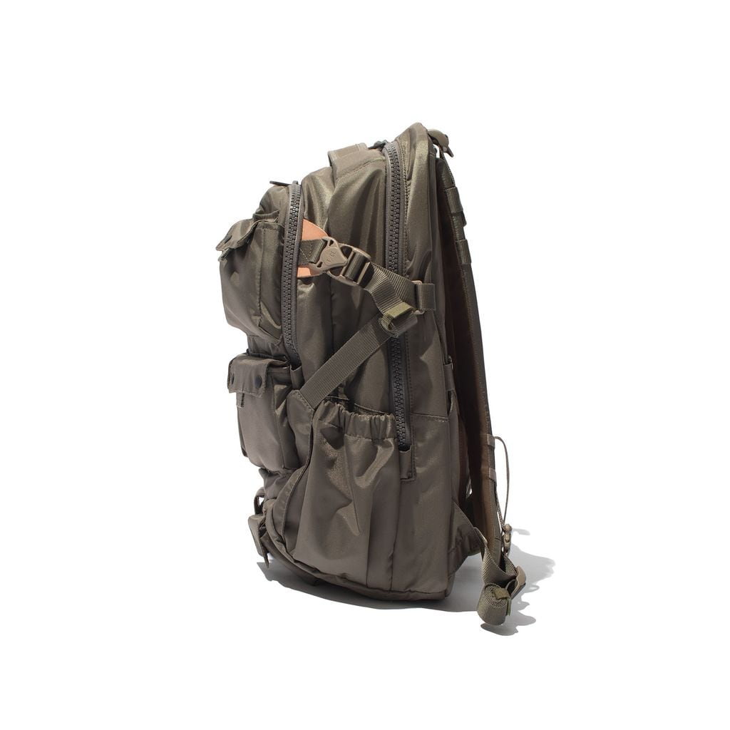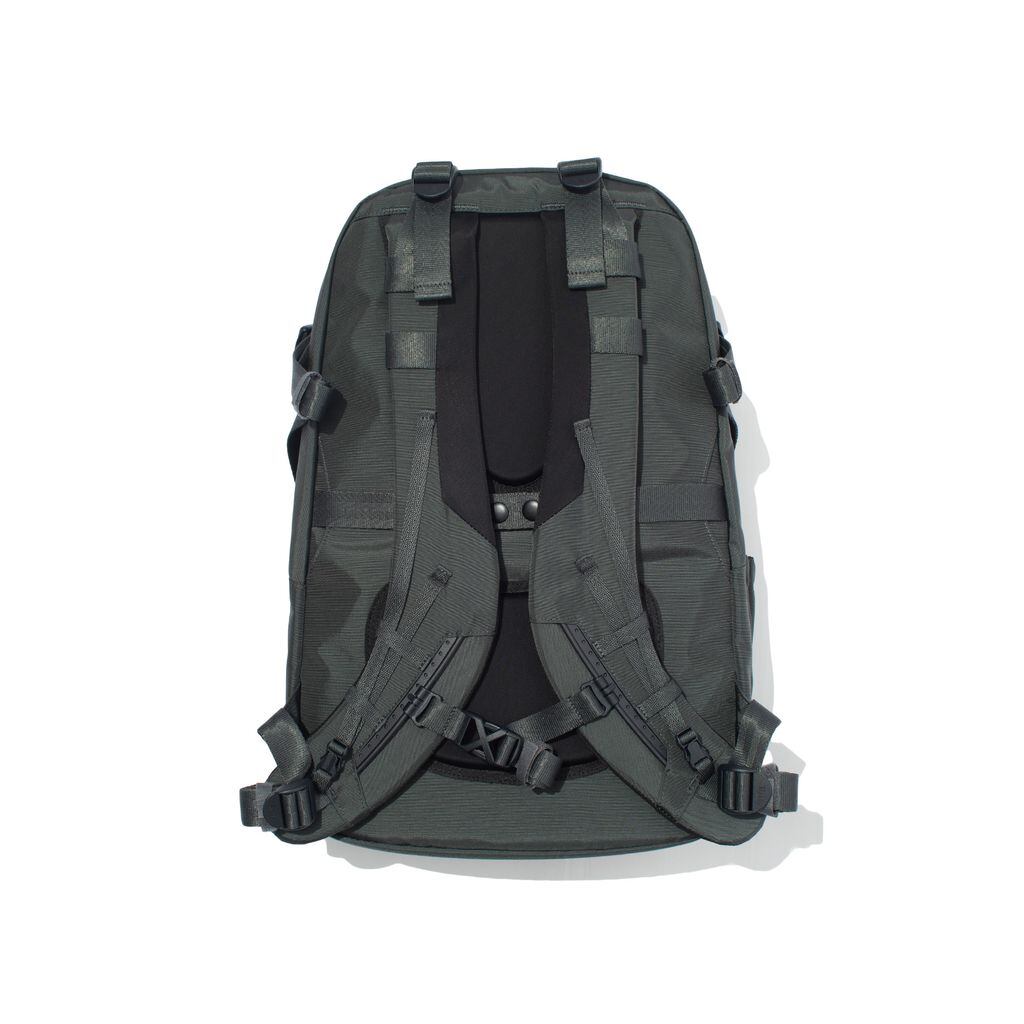 ショルダーにはサコシュや、ポーチなど取り付けられるMOUNTING T SYSTEMを搭載。1泊2日用の旅を想定し設計された28L のデイパックです。フロントにはマルチガジェットポケット装備。背面には15 インチまでのラップトップも収納可能。 テープのロールエンド処理や、肩のカーブに沿うように工夫されたショルダーは、長時間背負っていても疲れにくい設計で、機能と快適さを追求しました。