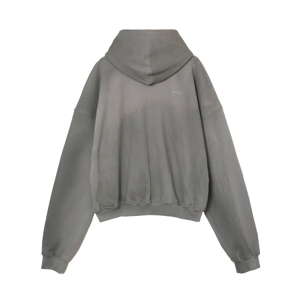 オリジナルで製作したぬめり感のある上質な裏毛を使用。背面のダーツや変形ポジションプリントなどブランドのらしさが詰まった製品。