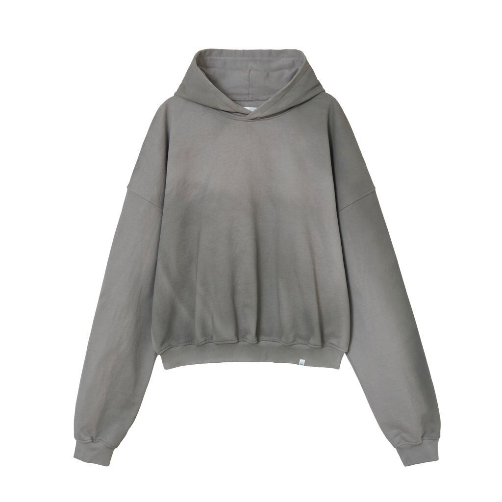 80-90年代を彷彿させるドロップショルダーにワイドな身幅のボックスシルエットのスウェットパーカー