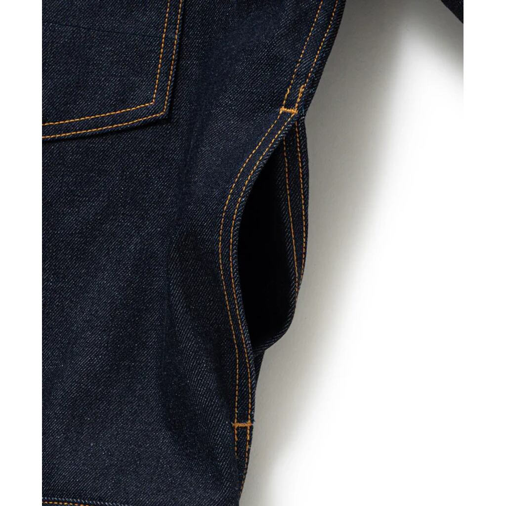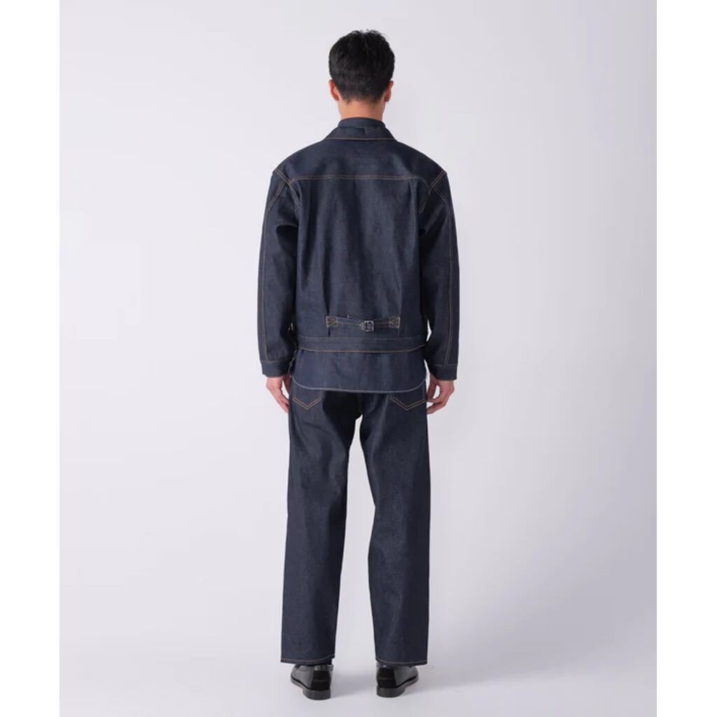 言わずと知れた某デニムメーカーの1stモデルをアップデート。身幅を少しワイドにとり、着丈をあえて短く設定することで80〜90年代を彷彿させるシルエットを表現。後ろ腰には針有りのシンチバックを配置。両脇には本来はないシームポケットを採用することで機能性をアップ。比較的目の詰まった12オンスセルビッチデニムを使用。特徴的でシャープな縦ムラと、洗い込むことことにより鮮やかな青に色落ちしていく経年変化を楽しめるアイテム。
