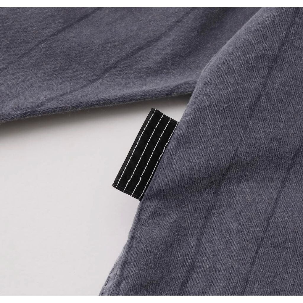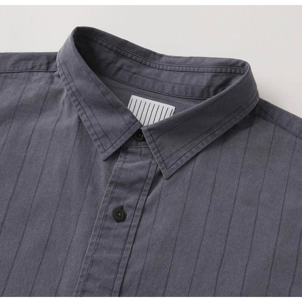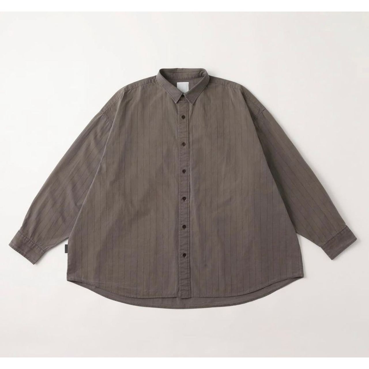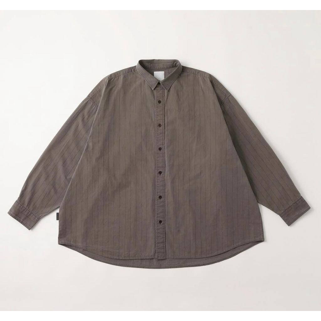 SFC定番のビッグシルエットのSFC SHIRT。エイジング加工を加えた素材にSFCオリジナルストライプ柄をプリントしたハイカウントコットンを使用。上質な米綿をもとにブレンドしたコットンを、40番手のコンパクト糸に紡績して高密度な平織り組織にすることで、ハリ腰のある素材感に仕上げています。