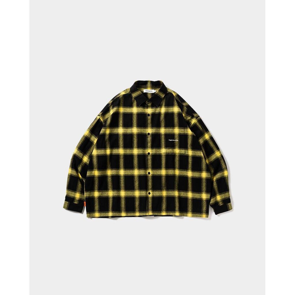 微起毛のチェック生地を使用した長袖ボタンアップシャツ。
