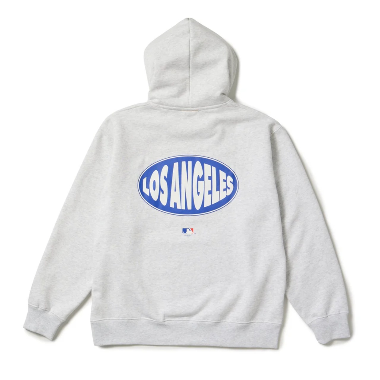 NEW ERA 裏毛 オーバーサイズド スウェット プルオーバーフーディー Powered by GORO NAKATSUGAWA(MIN-NANO) ロサンゼルス・ドジャース ライトグレー | MAROON WEBSTORE
