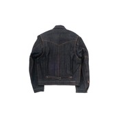 507XXをベースに再構築したデニムジャケットは、トリプルプリーツやオーバルステッチ、象徴的なワイングラス型のポケットを内外両面に配しています。袖口から伸びるエルボーパッチに加え、テーラードスリーブがインパクトのあるシルエットを演出します。素材はSUGARHILL ORIGINAL DENIM 14oz。ムラのある風合いが特徴的な丈夫なコットンを主体とした生地です。経糸はインディゴロープ染め、緯糸は従来のナチュラルカラーではなくカーキ色に染めています。カーキ色の緯糸を使用することでヴィンテージのような深みのある色落ちを実現しています。