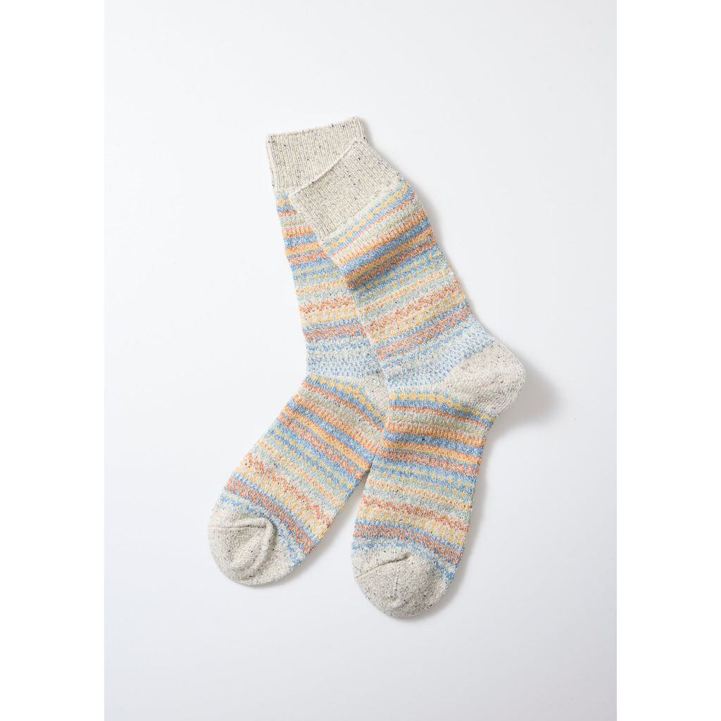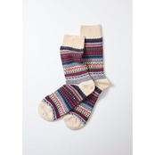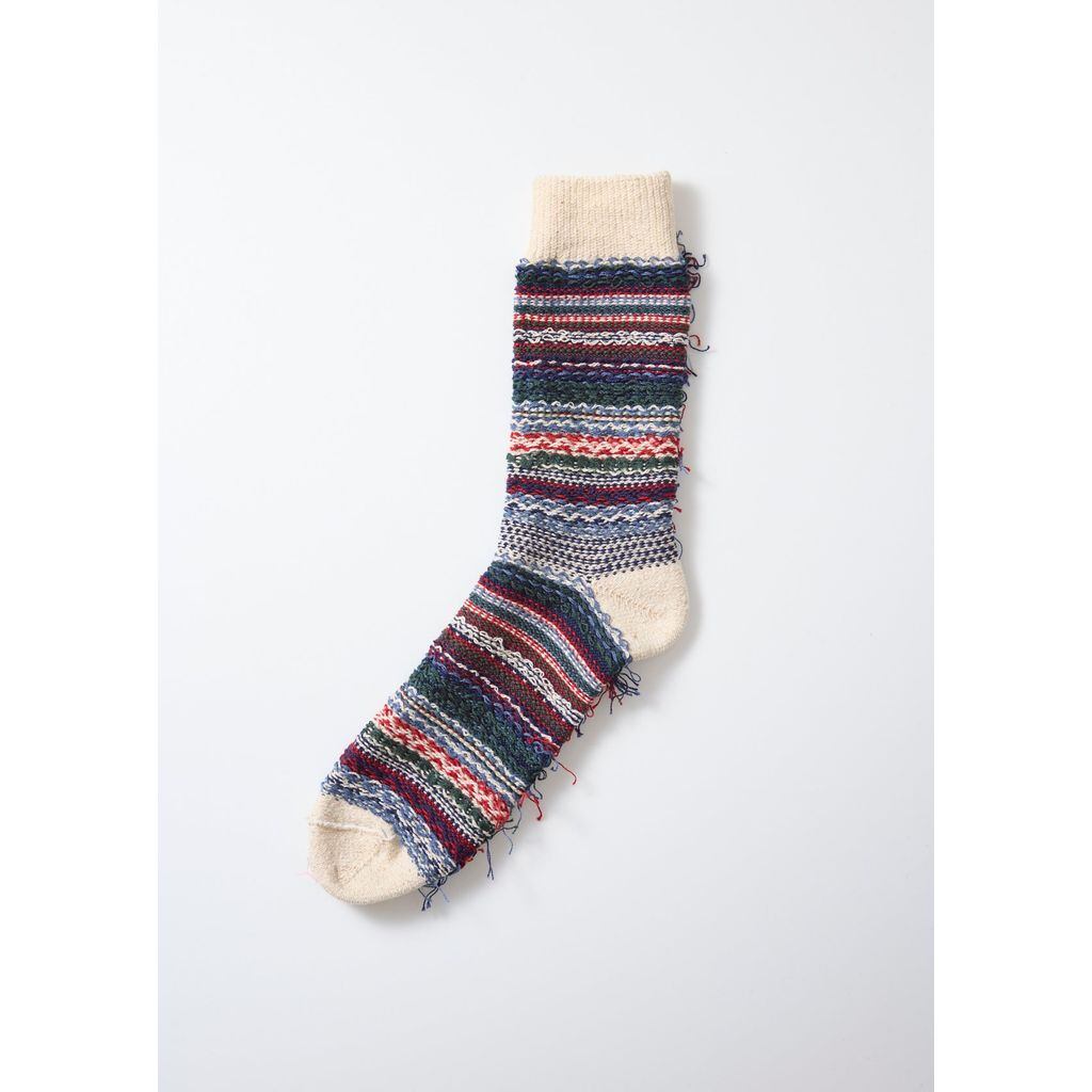 ノルディックセーターから着想を得た、程よい厚みのソックス。ジャカード編みで編み立てることで、内側に柄の糸端が出にくく、ゴワつきによる着用時のストレスを軽減。スニーカーはもちろん、革靴とも合わせやすい一足です。