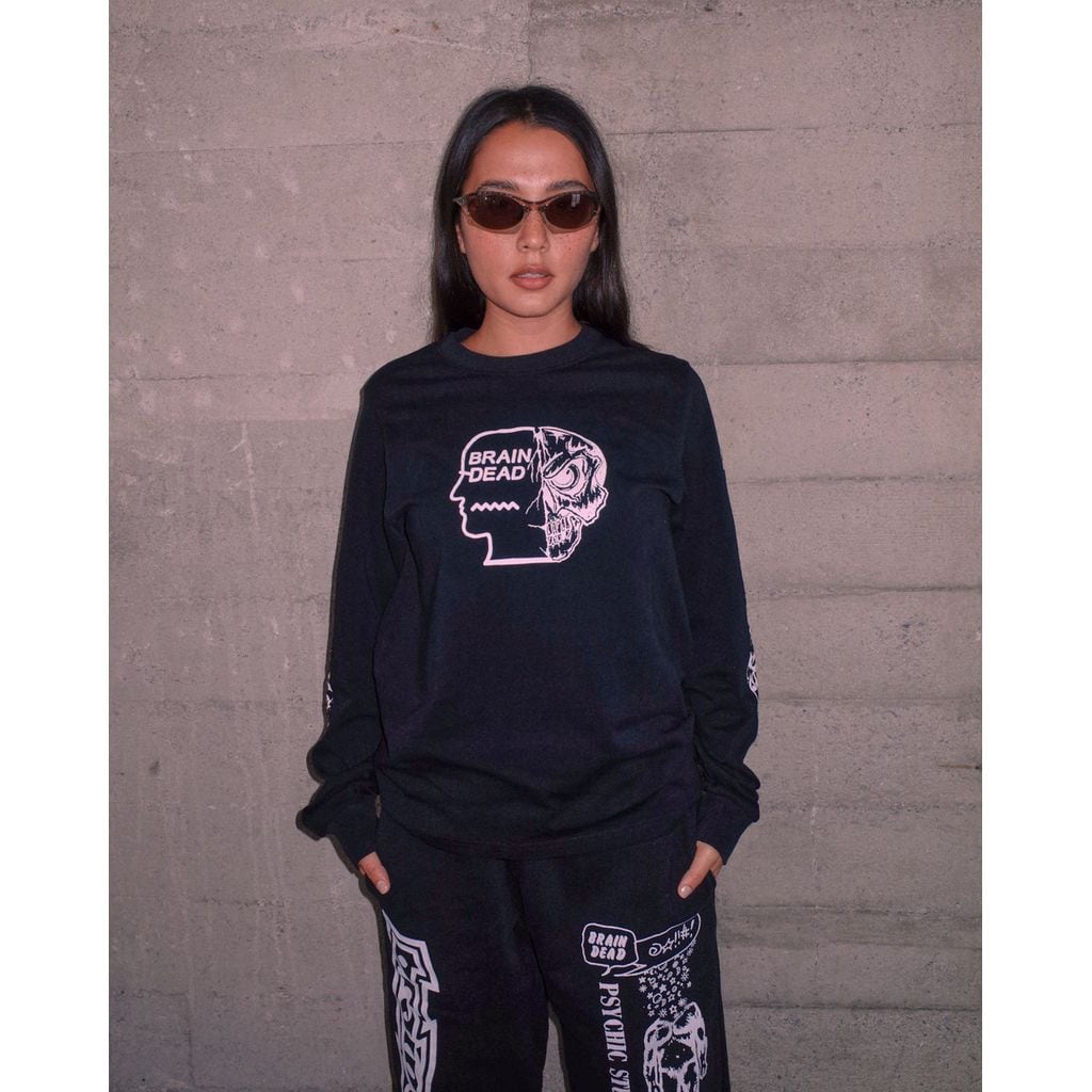 BRAIN DEAD Skull Mech Long Sleeve T01004668FW25 フロント、袖、背中にBrain Deadのグラフィックをあしらった、定番の長袖シャツです。 素材:綿100%