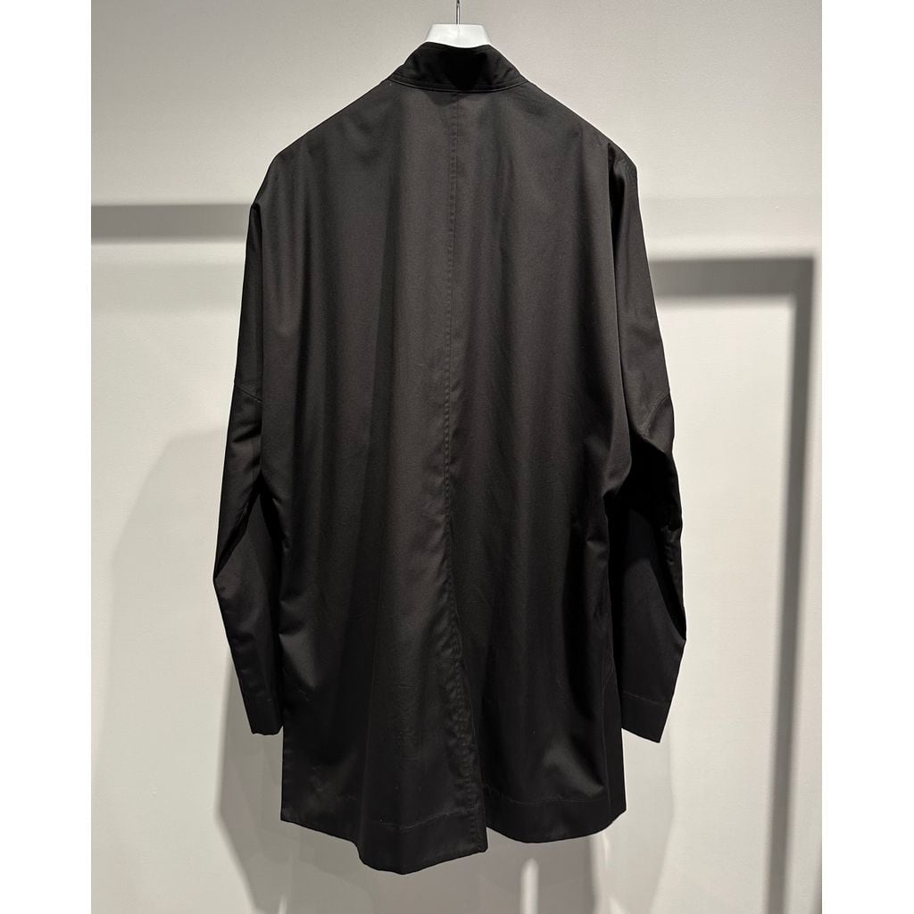 高密度でハリがあり、クリアな表面感を持つシャツ地の定番素材を使用しています。第一ボタンにのみ釈迦ボタンが配されたシャツは、ゆったりとしたシルエットとマッチして1枚で様になるアイテムです。