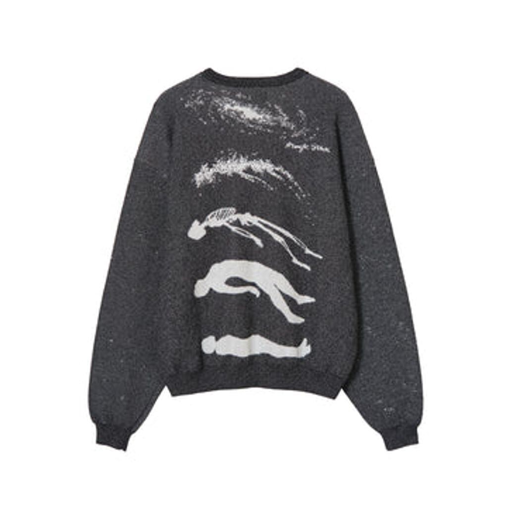 ギャラクシー柄をジャガードで再現した14Gのスウェットライクなテクニカルニット。