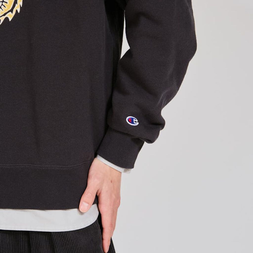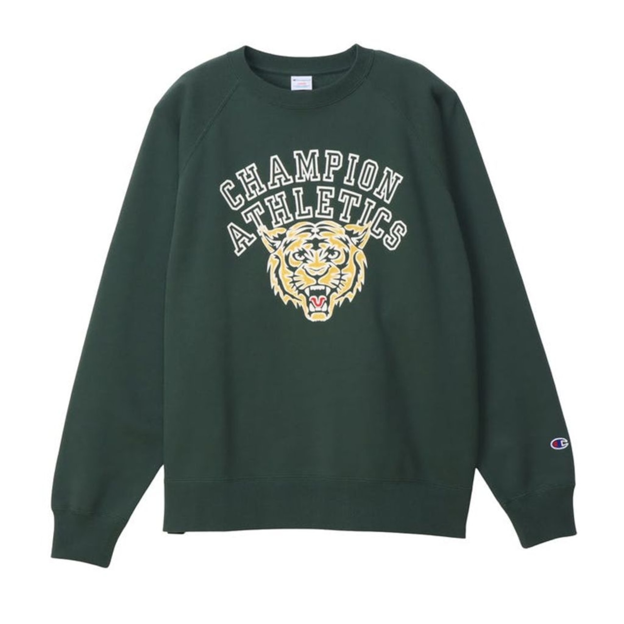 Champion(チャンピオン)のスウェットシャツは、「ザ キング オブ スウェットシャツ」と評されるほど、世界中の多くのファンに愛されてきました。環境に配慮して生産されたサステナブルなアメリカ綿を100%使用した、ミドルウェイトで裏起毛のクルーネックスウェットシャツです。起毛の度合を少なくした「半起毛」仕様なので、シーズンを限定することなく長く着用できます。全体的にゆとりを持たせたリラックスフィット。前身頃のグラフィックは、動物をモチーフにしたマスコットを描いたものが多く見られた1950~60年代のスクールウェアやカレッジウェアのクラシックテイストのデザインを取り入れています。白地のフロッキーの上にエアブラシで着色する当時よく使われていたプリント手法を採用しています。同じプリント手法を使用したフーデッドスウェットシャツ(C3-C102)も展開しています。