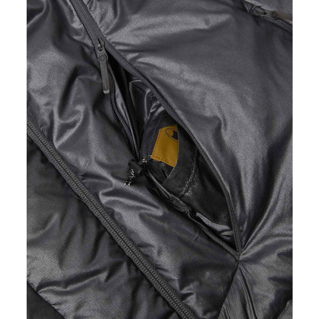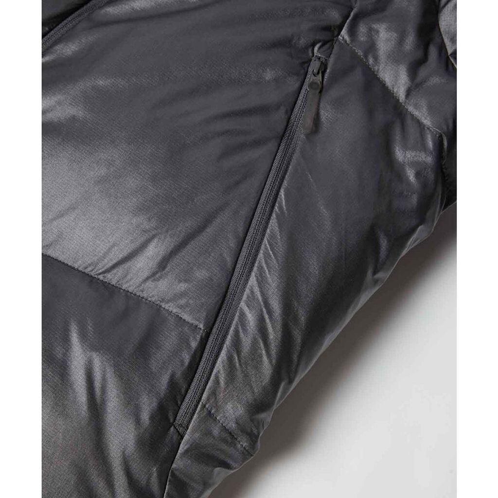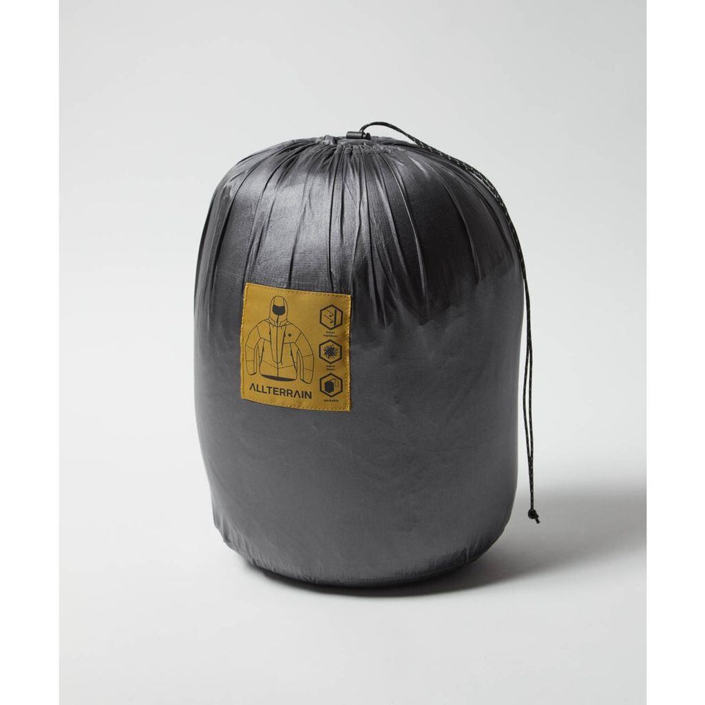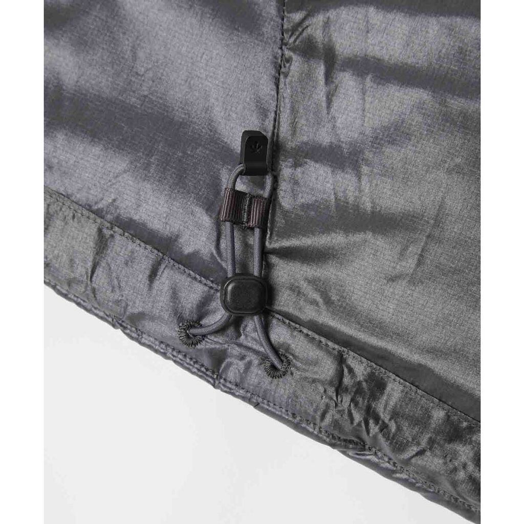 フロントはフルジップ仕様。左右前身頃に合計4つのファスナーポケットを配置。左前身頃の大容量ファスナーポケットは、内部に更に小分け用の別ポケットも内蔵。袖口は風の巻き込みを軽減するインナーカフス仕様。裾口に調節用のゴムスピンドル+ストッパーを配置。携帯に便利なスタッフサック付き。