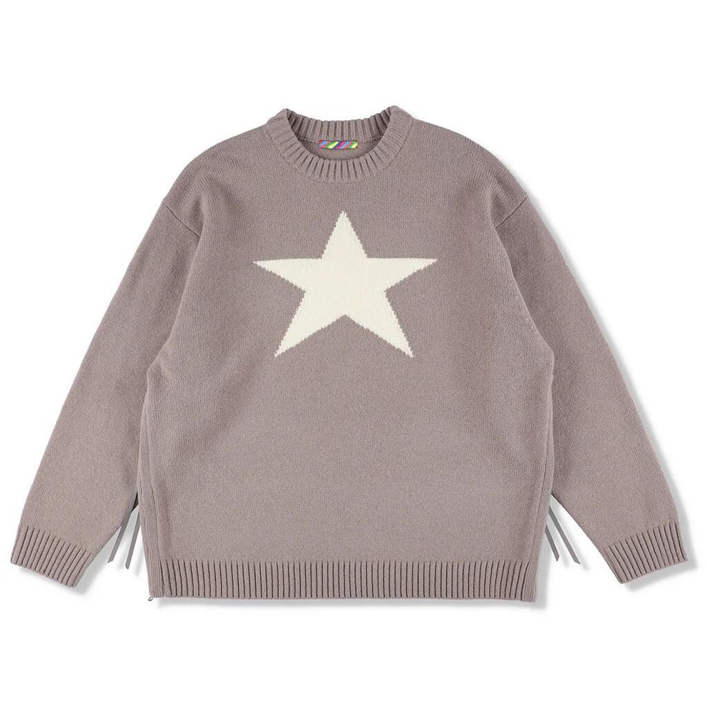 胸に大きな星柄をあしらったニットクルー。暖かく、ふんわりとしたソフトな肌触りが特徴。両サイドにベンチレーションを備えた機能的なニット。お好みのスリットやベンチレーションでカスタマイズ可能。