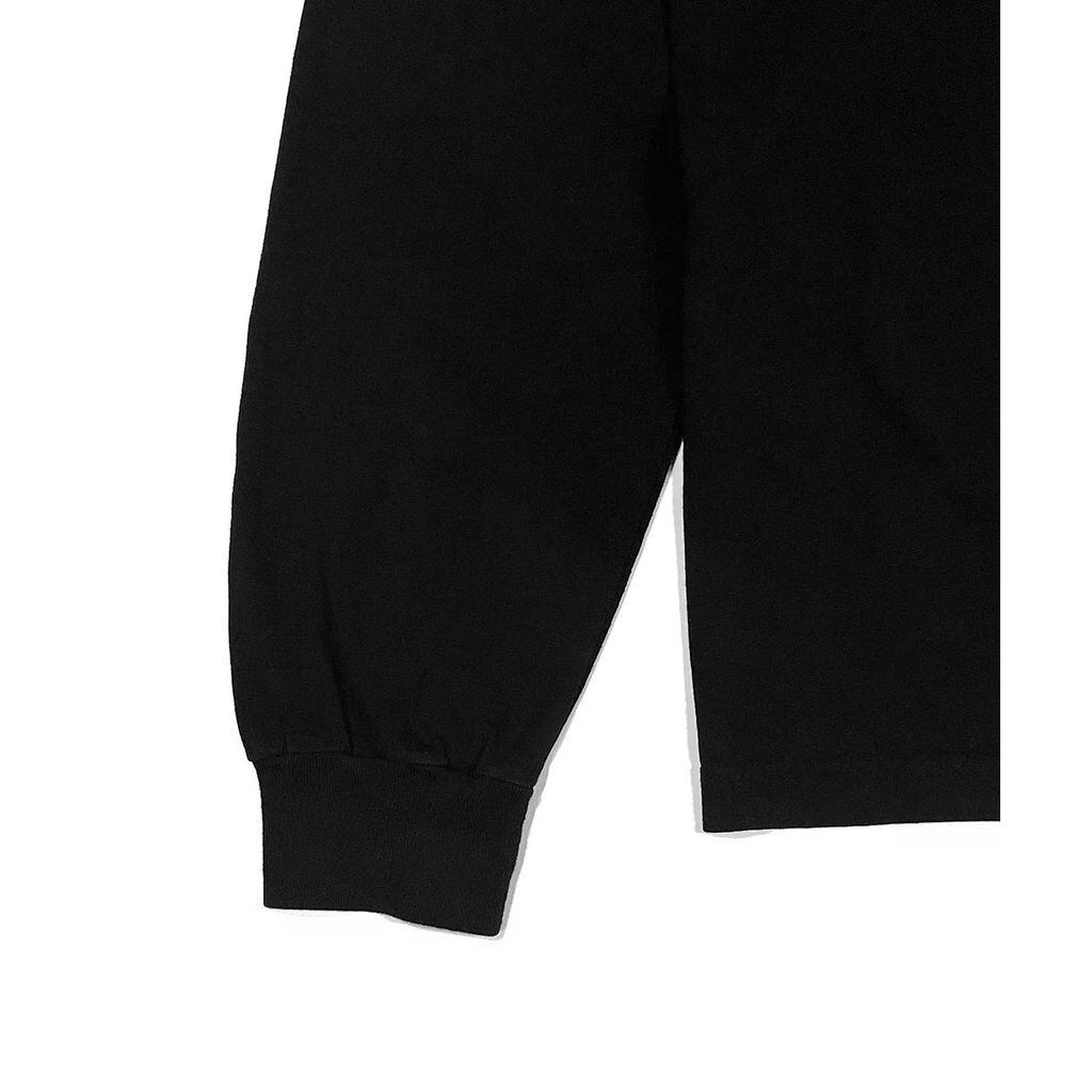 フェイクレザー製の巨大タグ、通称「メガタグ」を裾に縫いつけたコットン素材のロングスリーブTシャツ。2025年の新作では、Made in USAの丸胴ボディでお馴染みの《MINE》製Tシャツをベースに採用しています。メガタグの内側には、カードなどの収納に便利なスタッシュポケット付き。
