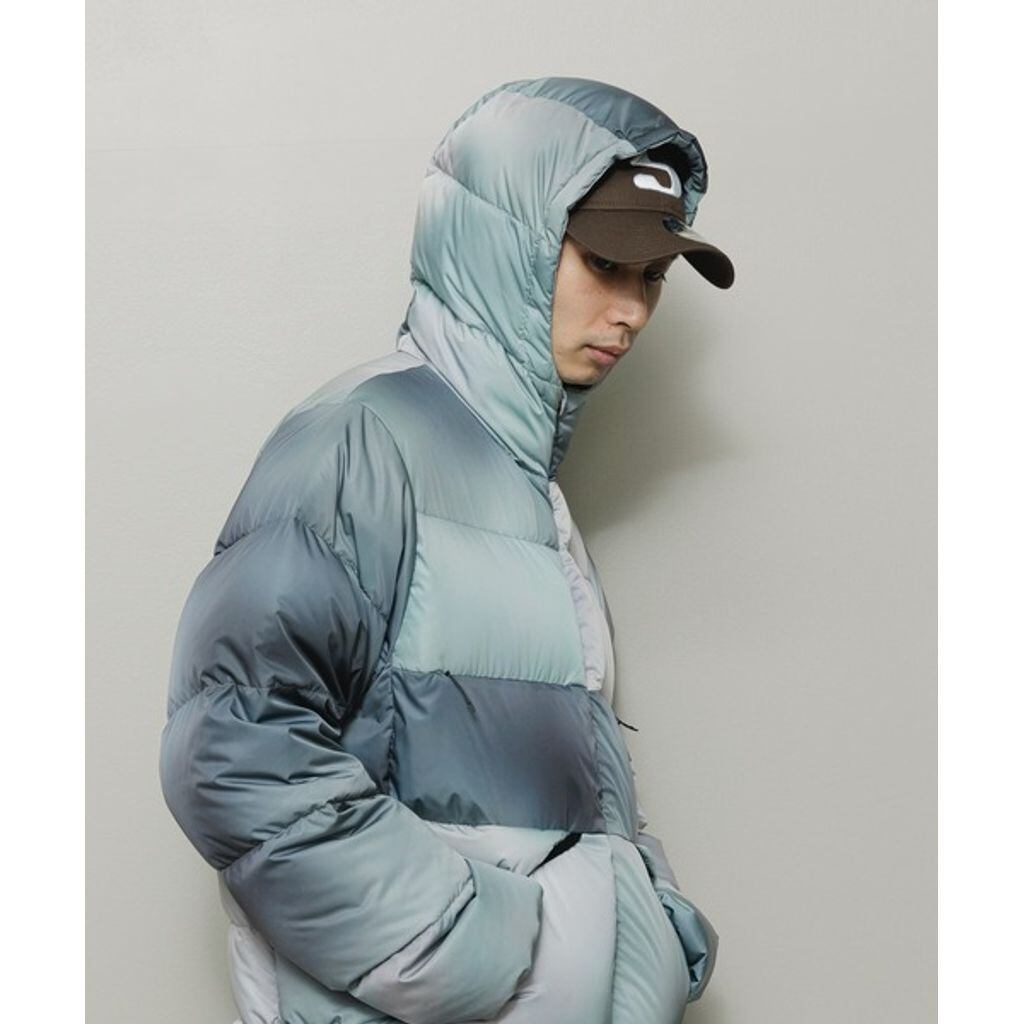 日本初のダウンブランドTAIONとコラボレーションしたダウンブルゾン。コンシールファスナーフロント、胸、腕、背面の4個のコンシールファスナーポケット、オリジナルグラフィックプリントファブリック、TAIONオリジナルナイロン採用。800フィルパワー。