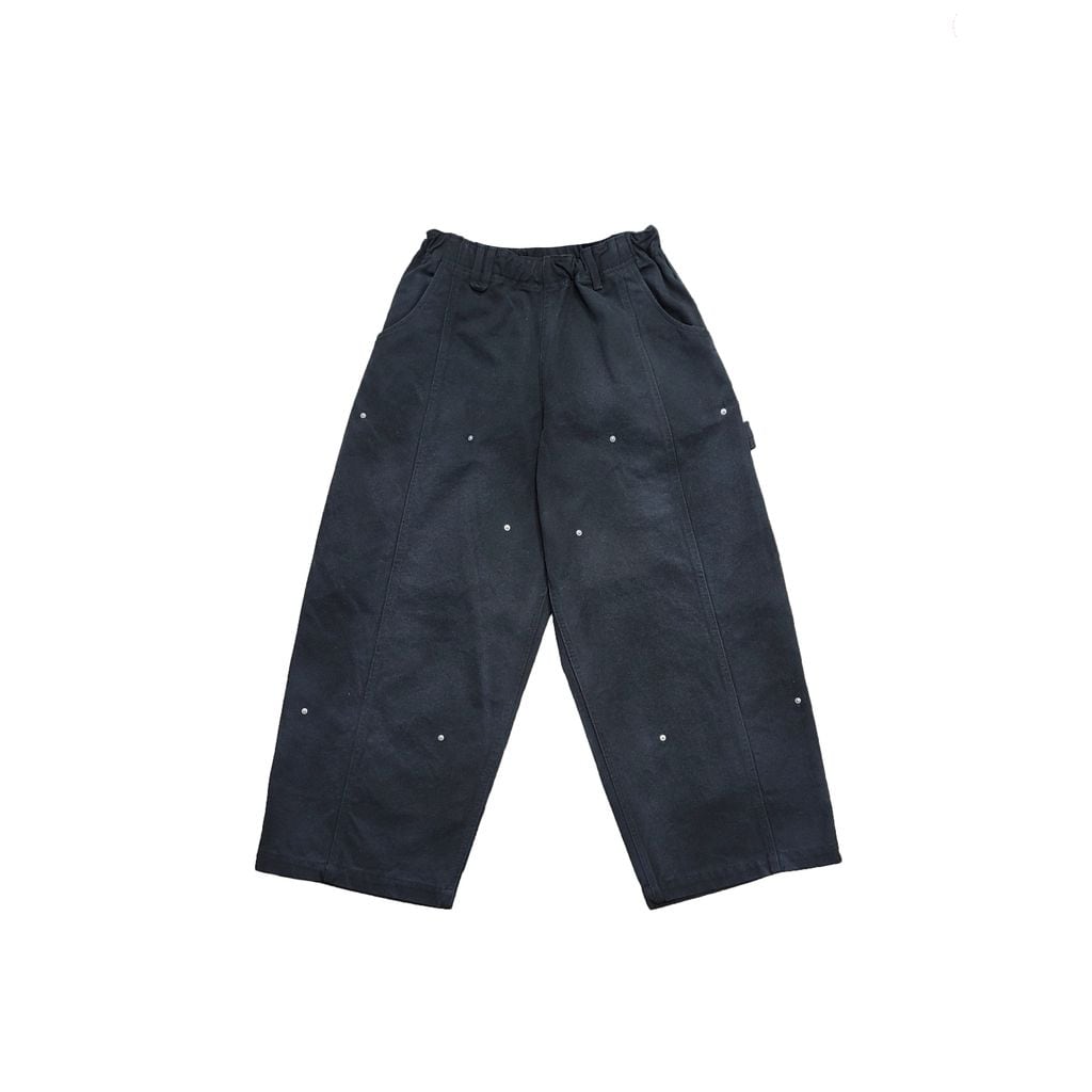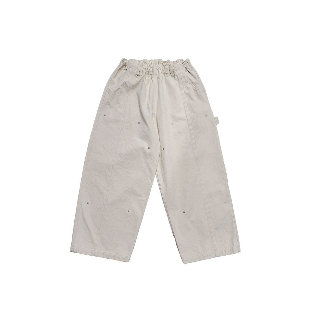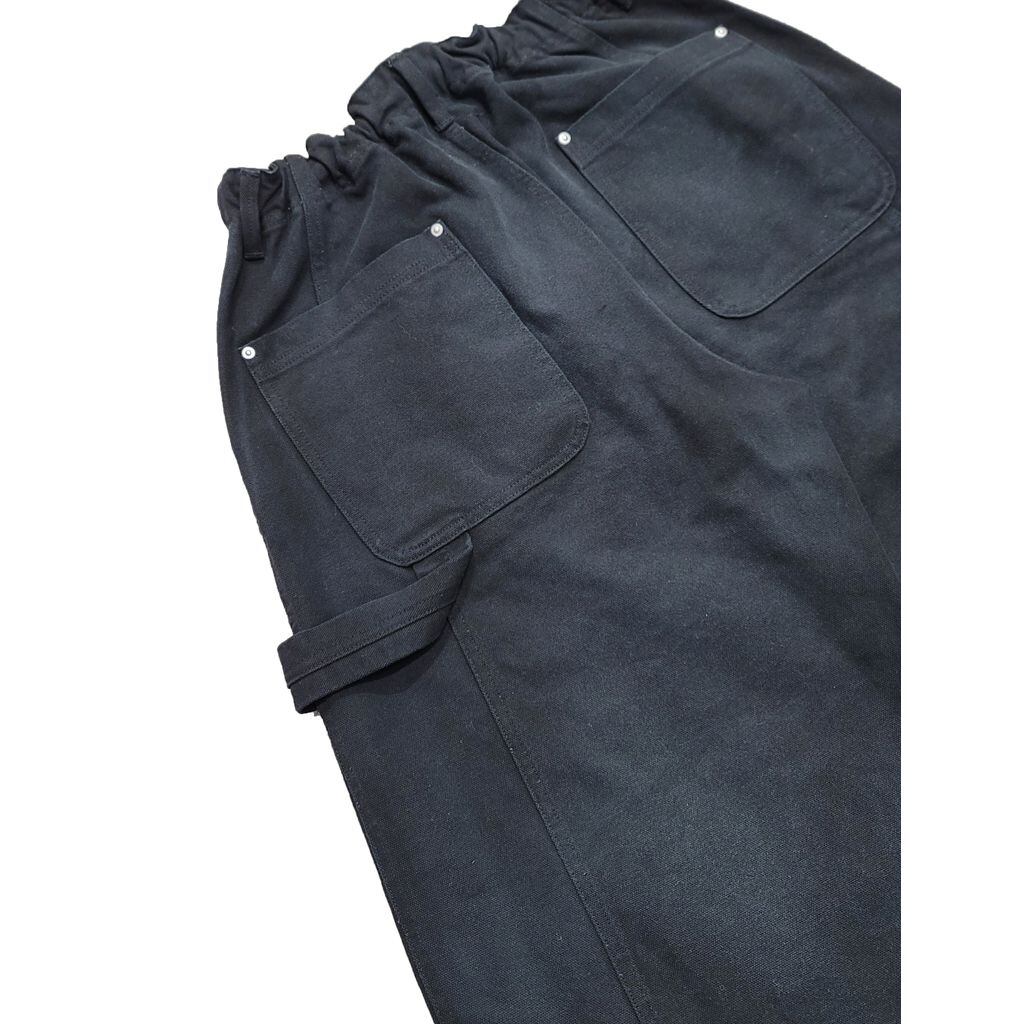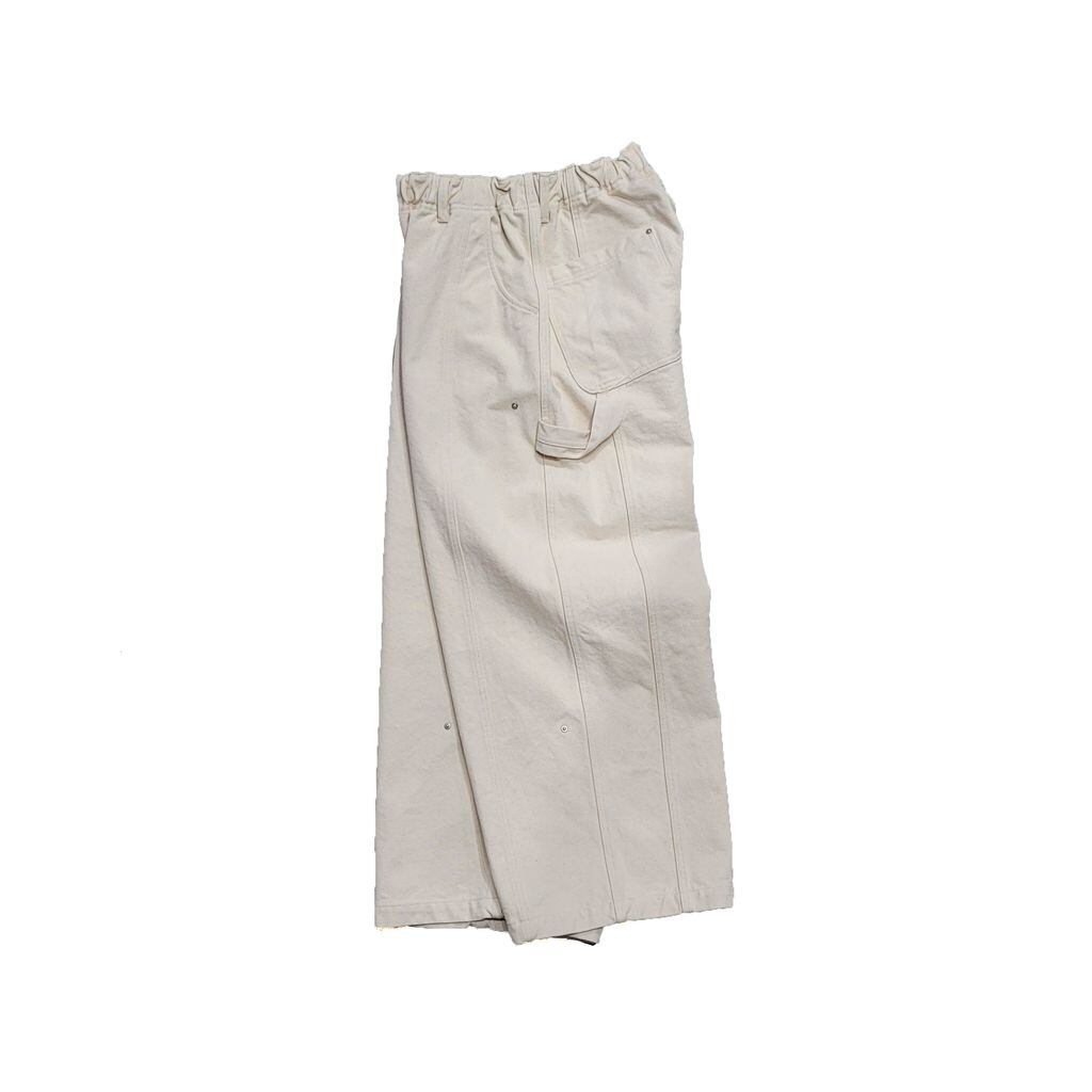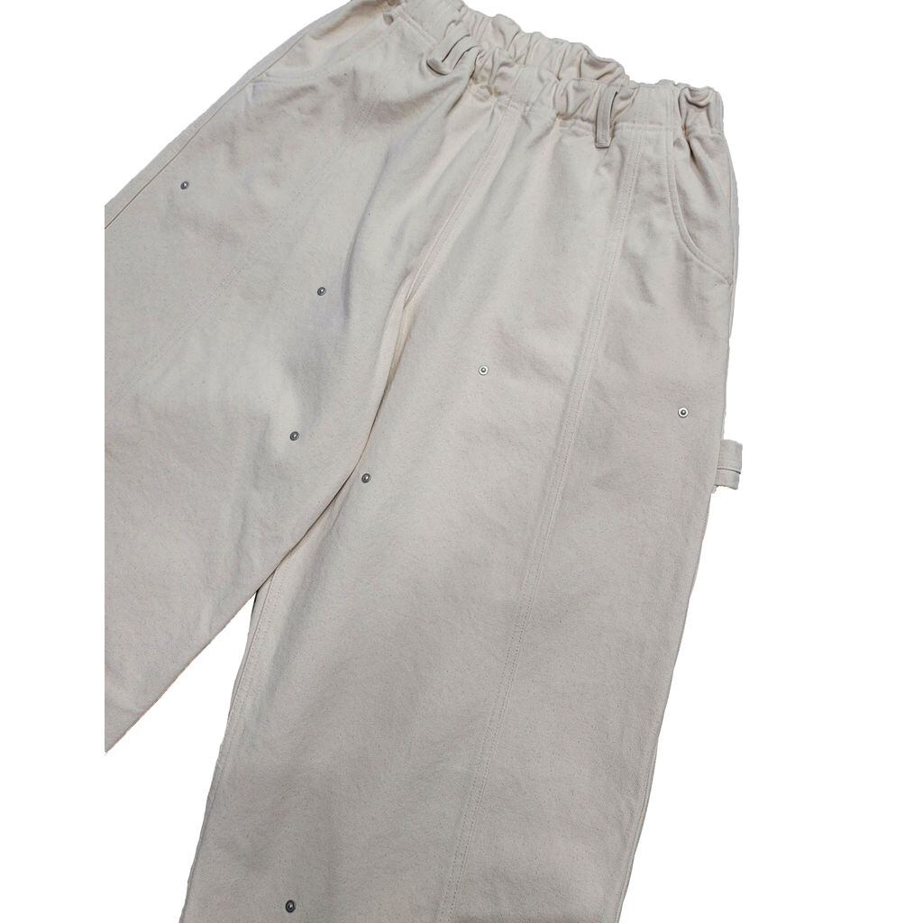 太型バルーンシルエットをベースとしつつ、ペインターパンツを連想する箇所にリベットを打ったデザインとディテールが融合した仕上がりとなります。