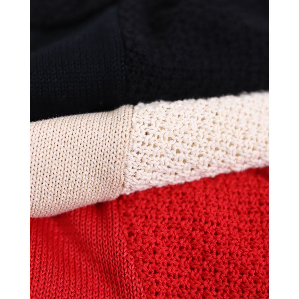 身頃部分は、ハリ感のあるしっかりとした編地。