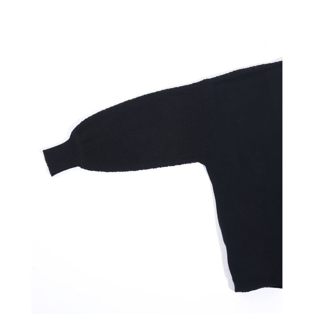 ・身頃はハリ感のある編地、袖は凹凸のある編地で切り替え