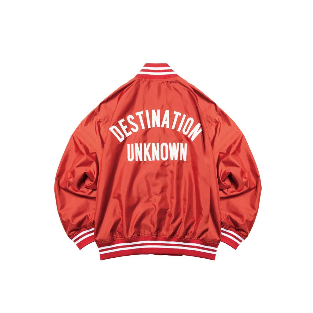 左胸にはLとRの組み文字ロゴ、背中にはDESTINATION UNKNOWNがパッチワークされています。