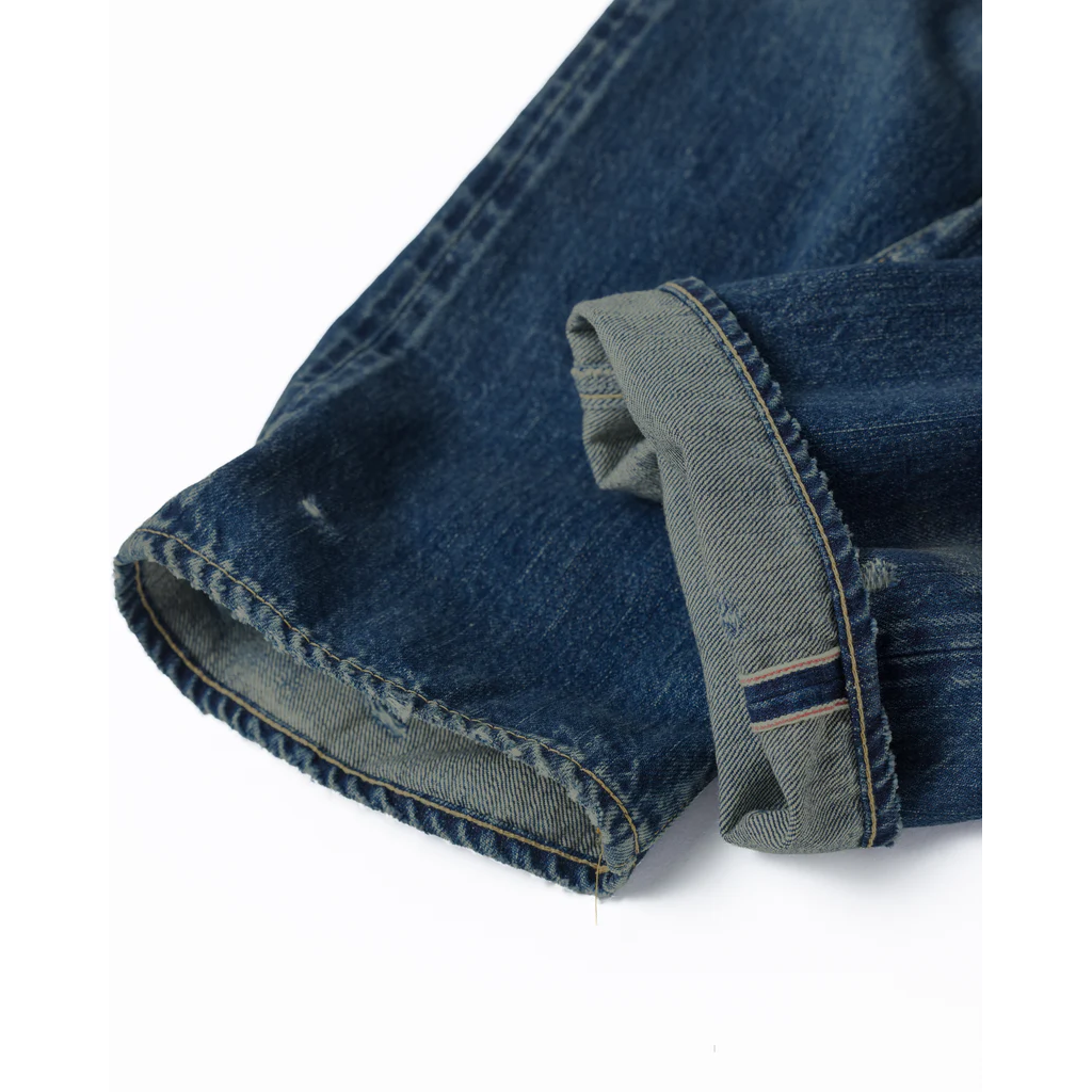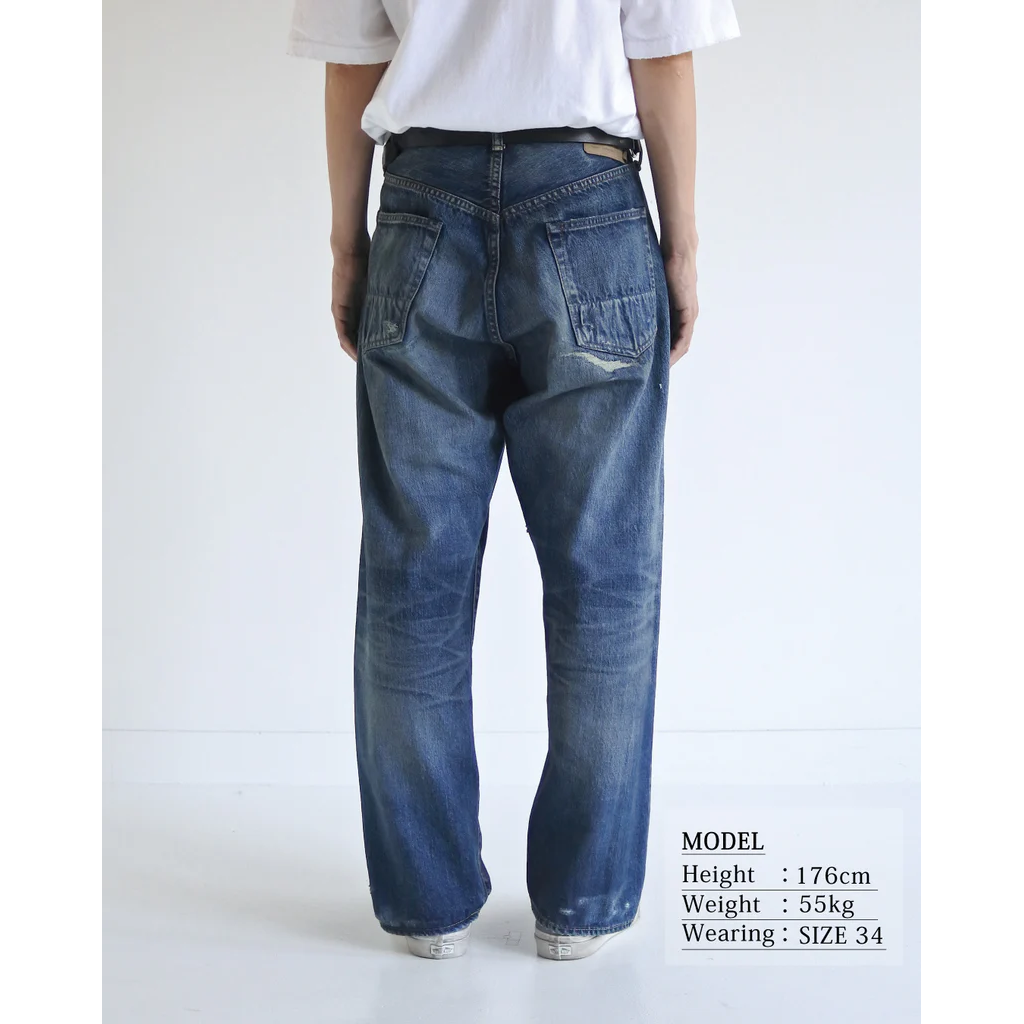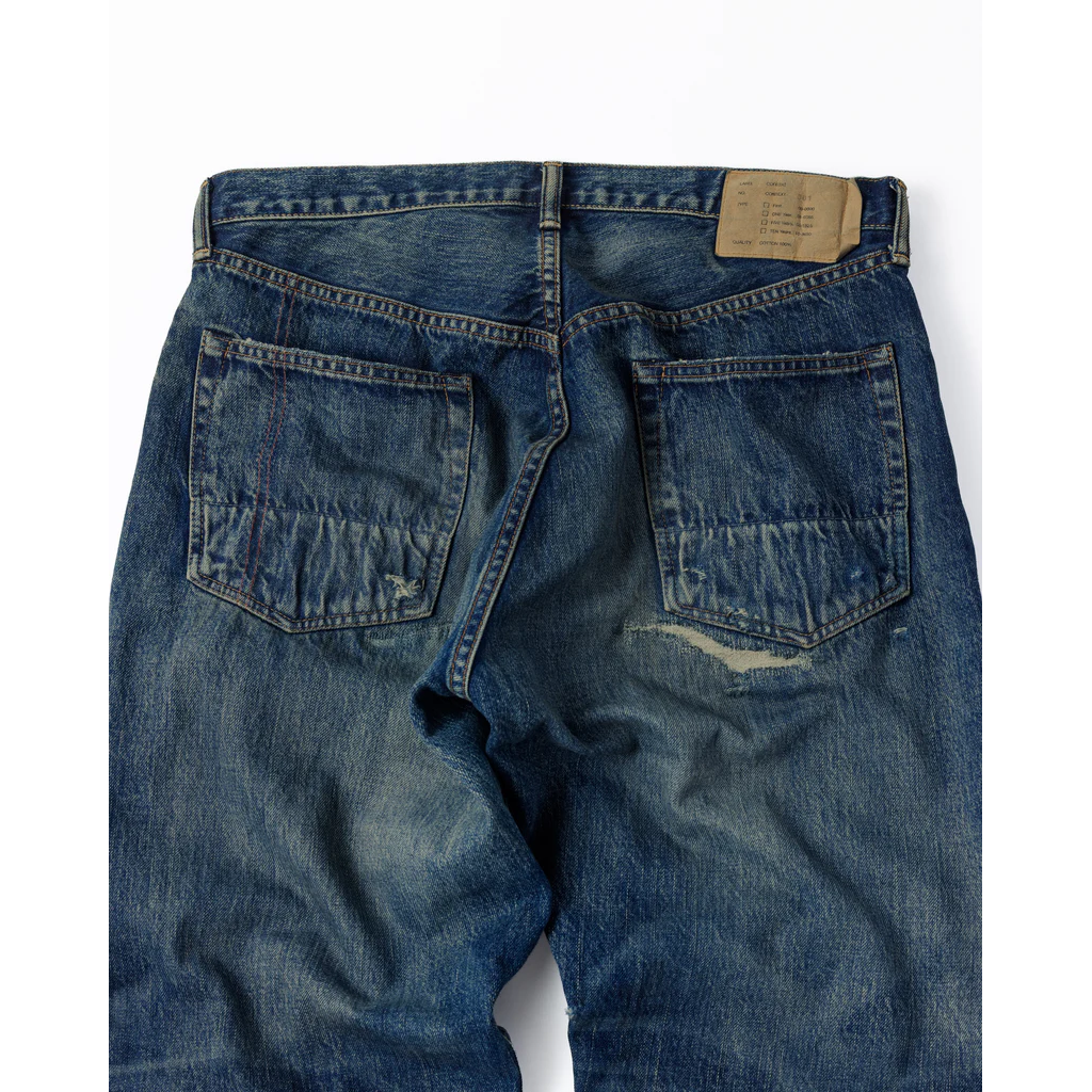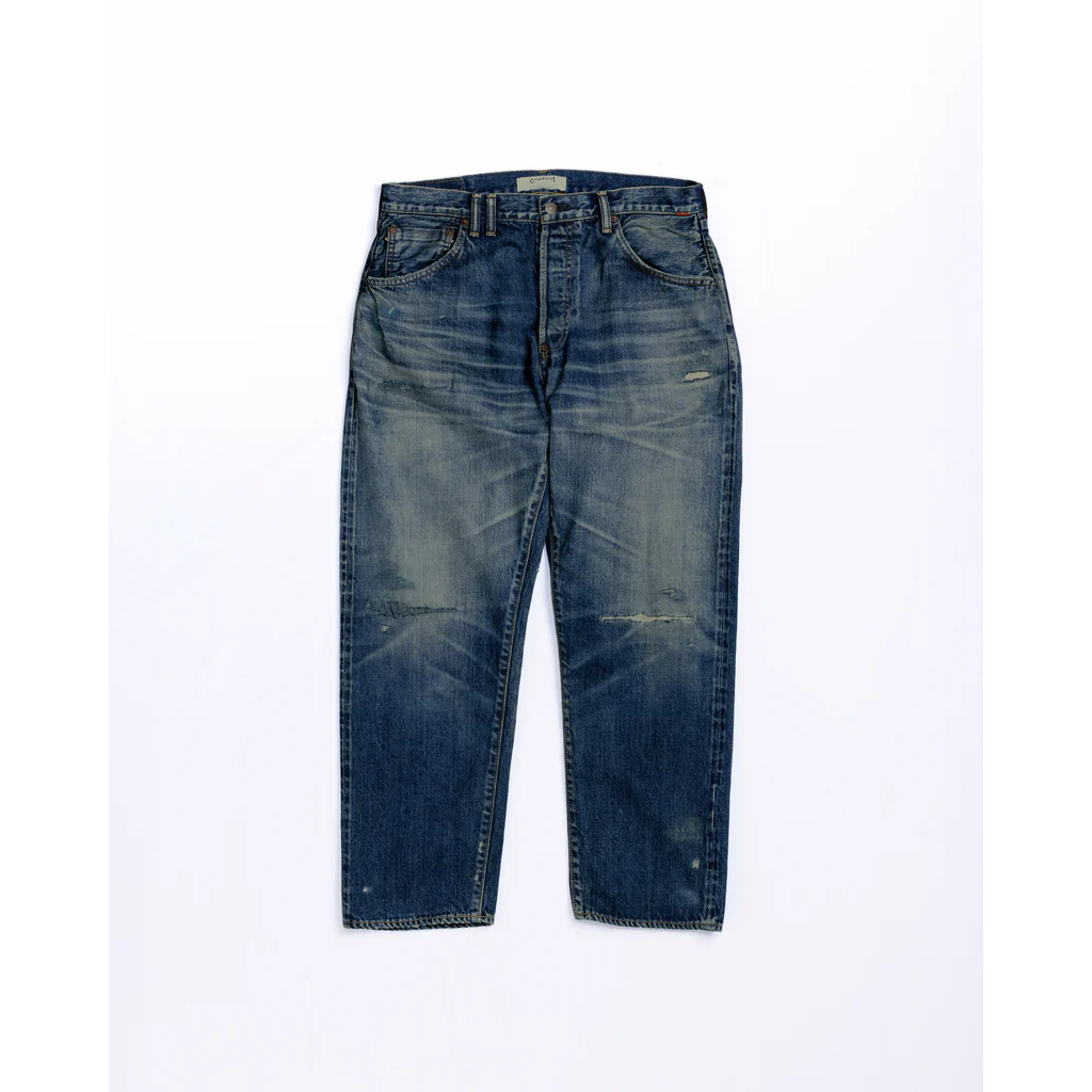 Features an overall faded wash with high-contrast honeycombs and whiskers. This piece captures an authentic vintage feel with meticulously repaired "time-worn" damages. A final tinting process is applied to give it a realistic, lived-in grit.
