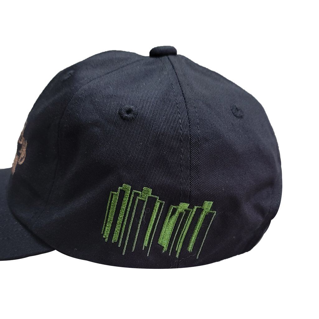ベースに、フロントとサイドに大きめの刺繍が鎮座