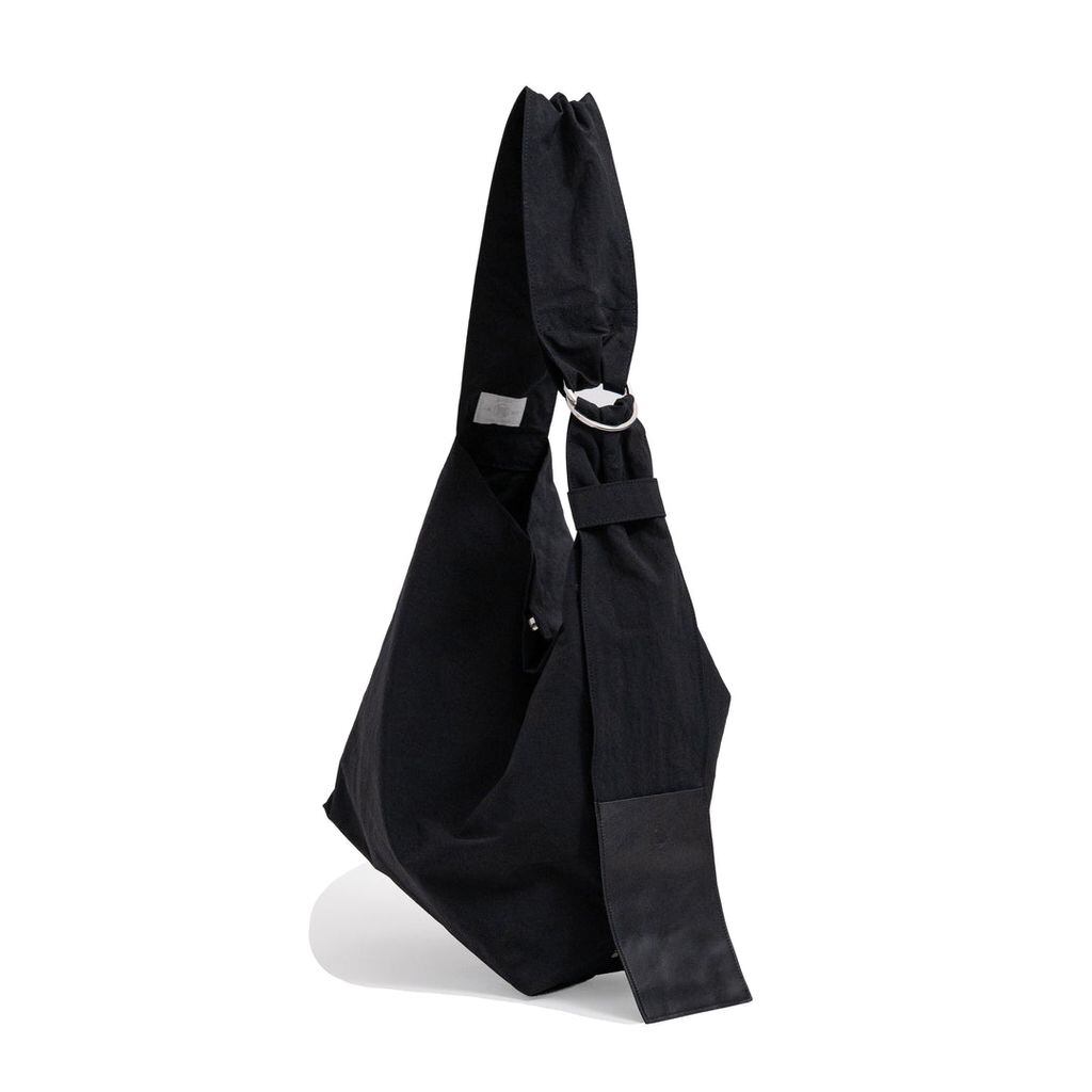 肩に掛けると、110mmの太幅ショルダーが静かに支え、重さを分散。 バッグというより、衣服の一部のように、自然に身体へ寄り添います。 本体は、日々の移動にちょうどよいサイズ設計。 内装にはオープンポケットを3つ、大きめのファスナーポケットを1つ備え、細かな荷物も整然と収まります。剣先のポケットにはスマートフォンなどを。必要なものへ、迷わず手が届きます。 付属レザーは、yorozuオリジナルの防水革。 人体や環境への負荷に配慮した最新処方のスコッチガードで仕上げています。